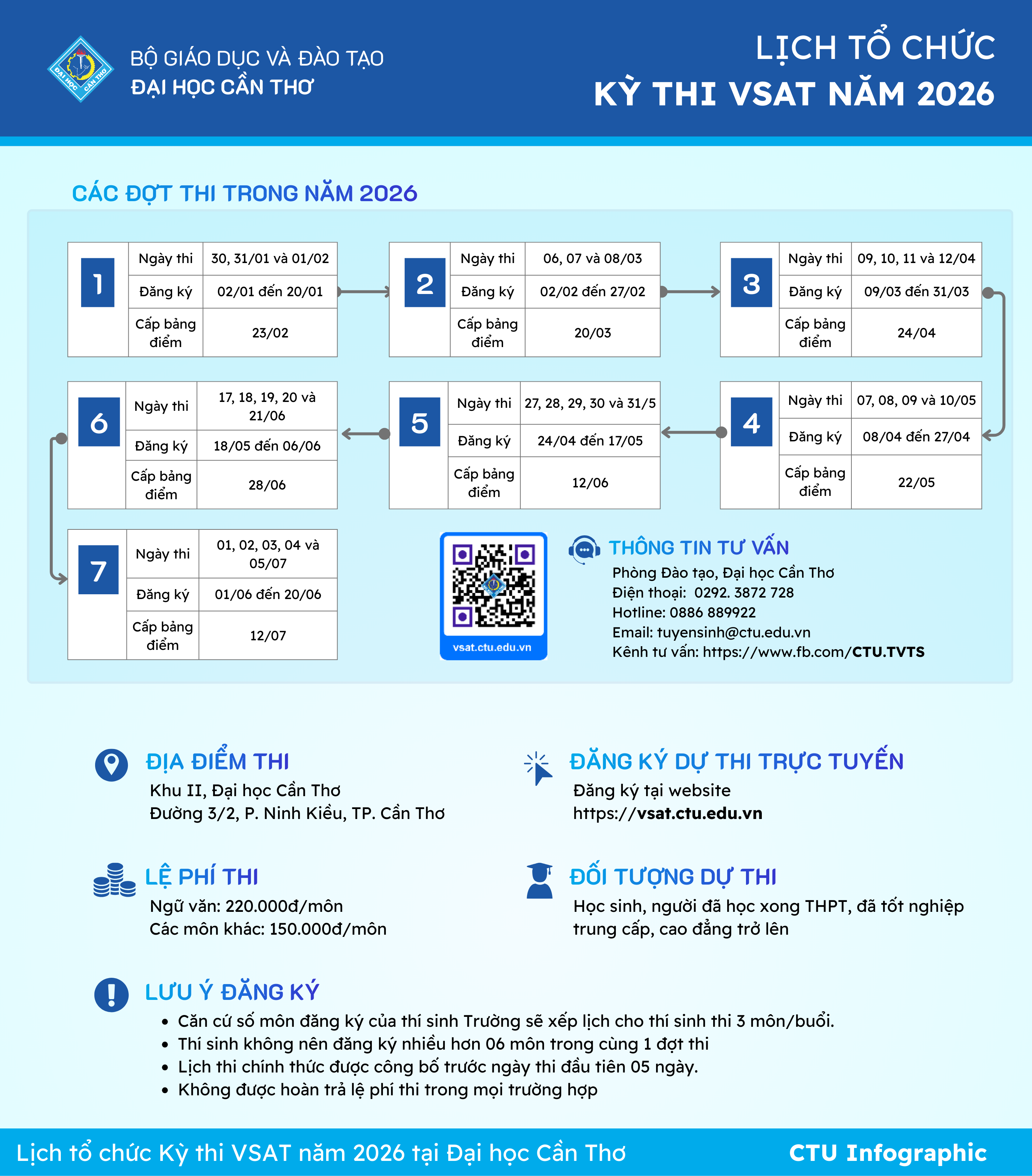 [Infographic] Lịch tổ chức kỳ thi VSAT 2026 tại Đại học Cần Thơ