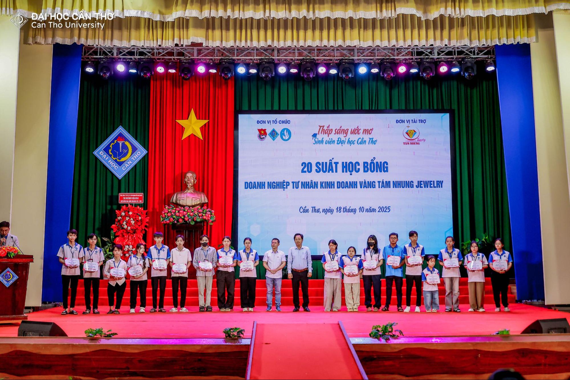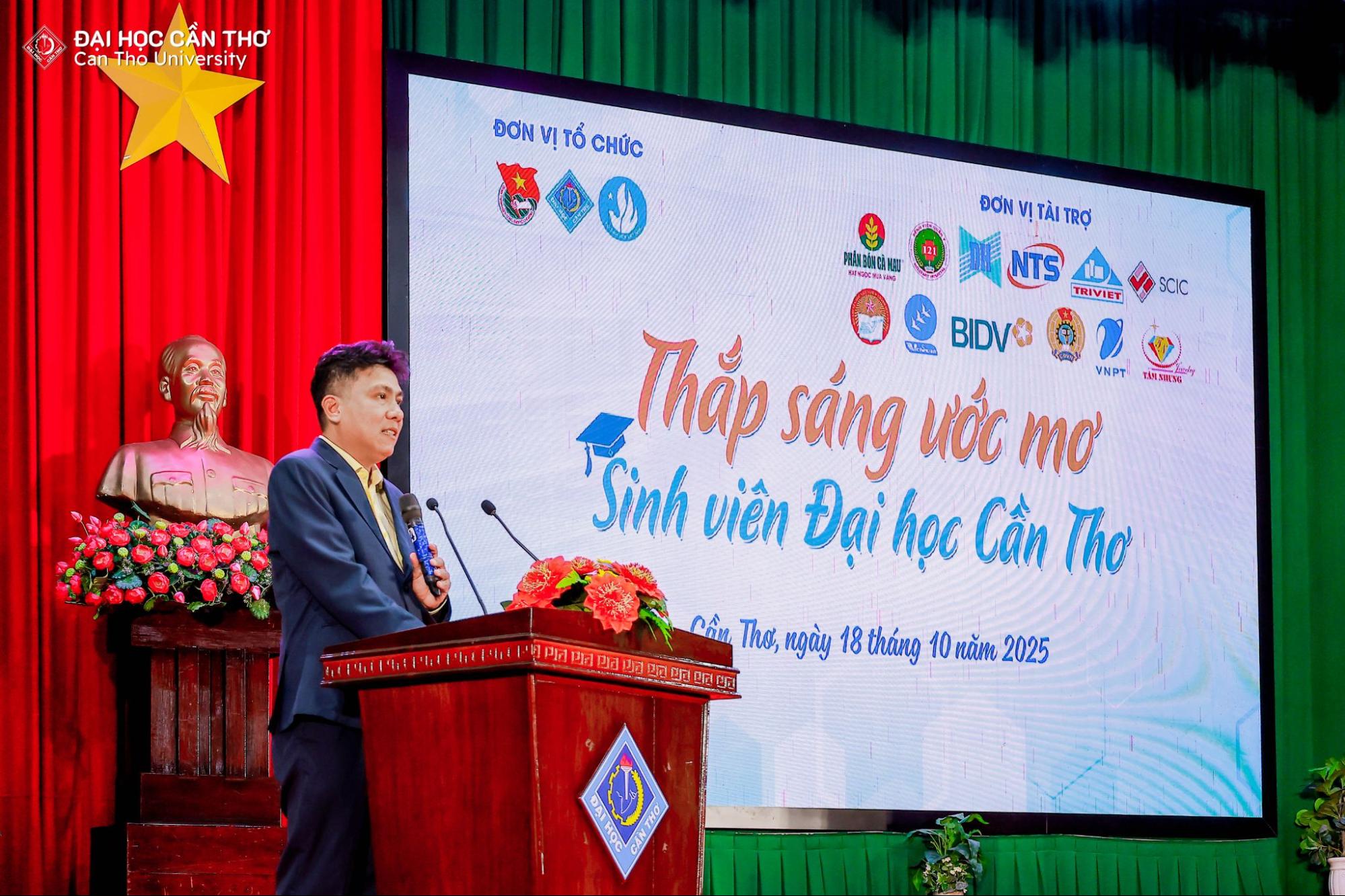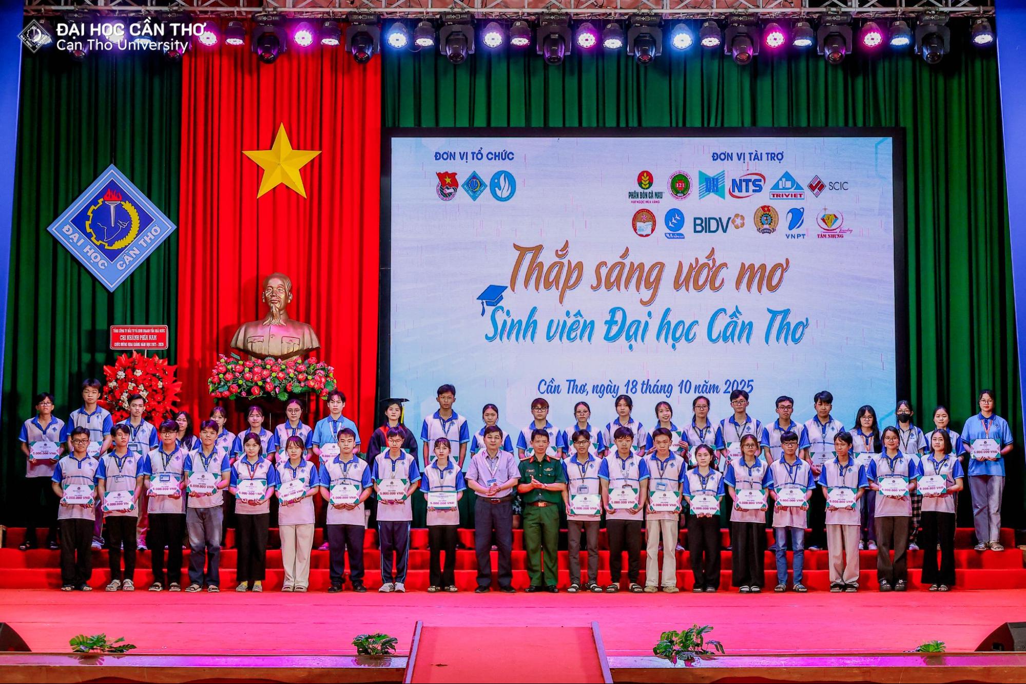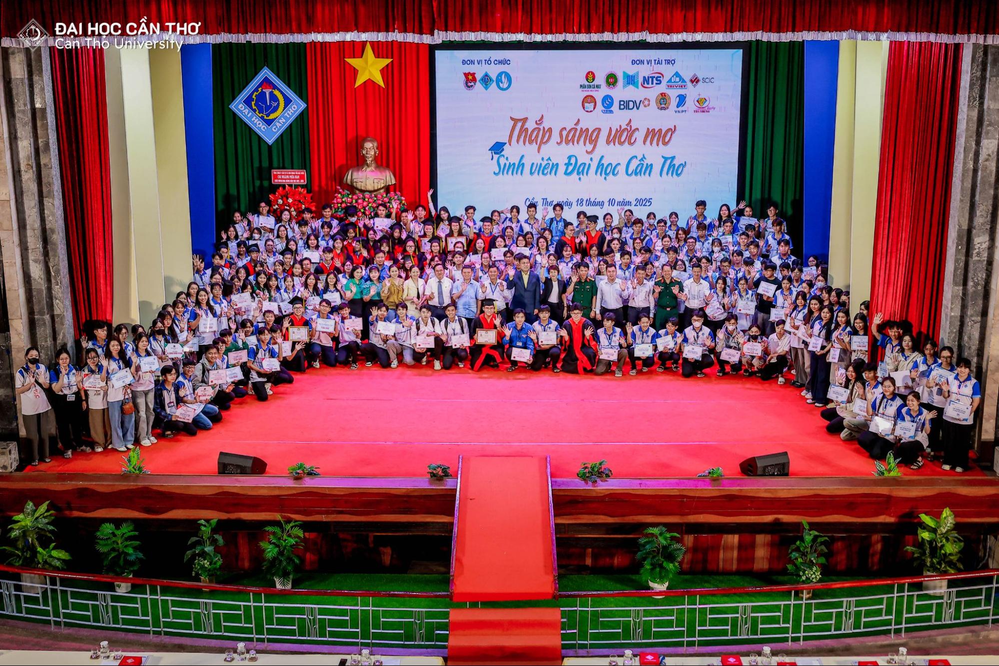 Nhằm thực hiện Nghị quyết Đại hội đại biểu Đoàn TNCS Hồ Chí Minh Đại học Cần Thơ lần thứ XXI, nhiệm kỳ 2024-2027; cũng như để khuyến khích tinh thần học tập, tôn vinh những sinh viên xuất sắc và lan tỏa giá trị cao đẹp, chiều ngày 18/10/2025, Đại học Cần Thơ (ĐHCT) long trọng tổ chức Chương trình “Thắp sáng ước mơ - Sinh viên Đại học Cần Thơ” năm 2025. Đây là hoạt động thường niên có ý nghĩa nhân văn sâu sắc, nhằm tiếp thêm nghị lực, khích lệ tinh thần học tập và hỗ trợ thiết thực cho sinh viên có hoàn cảnh khó khăn vững bước trên con đường chinh phục tri thức.