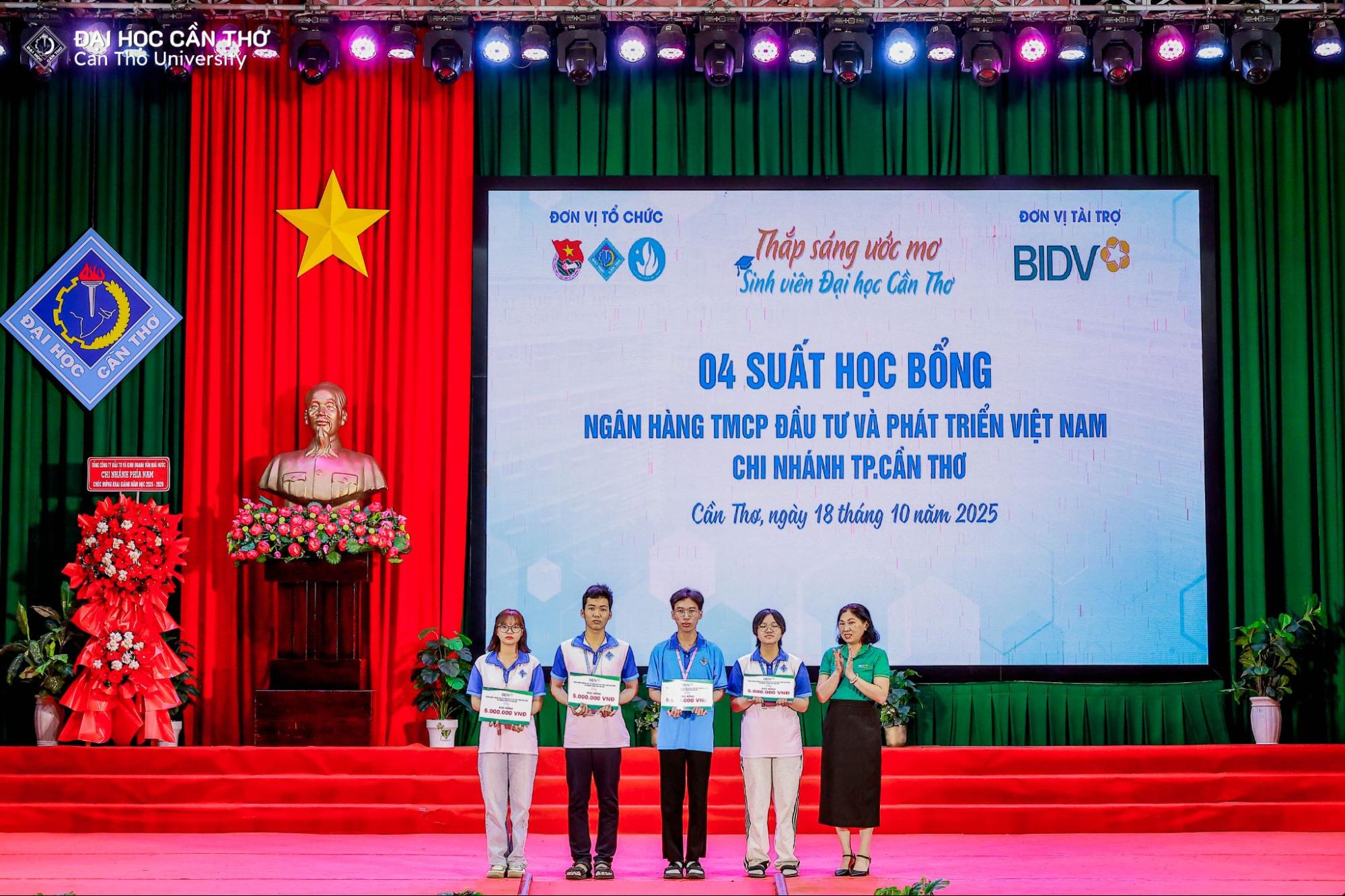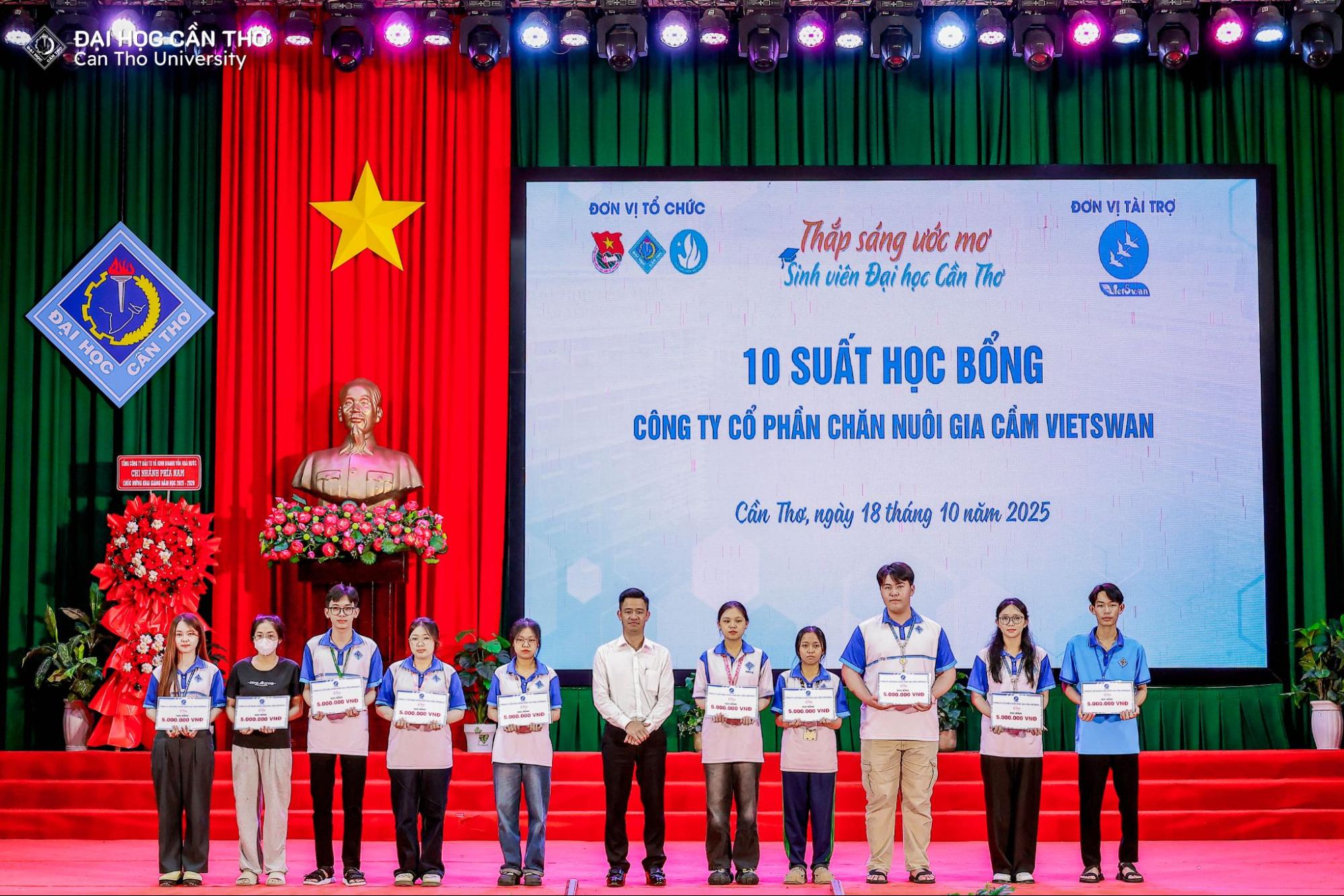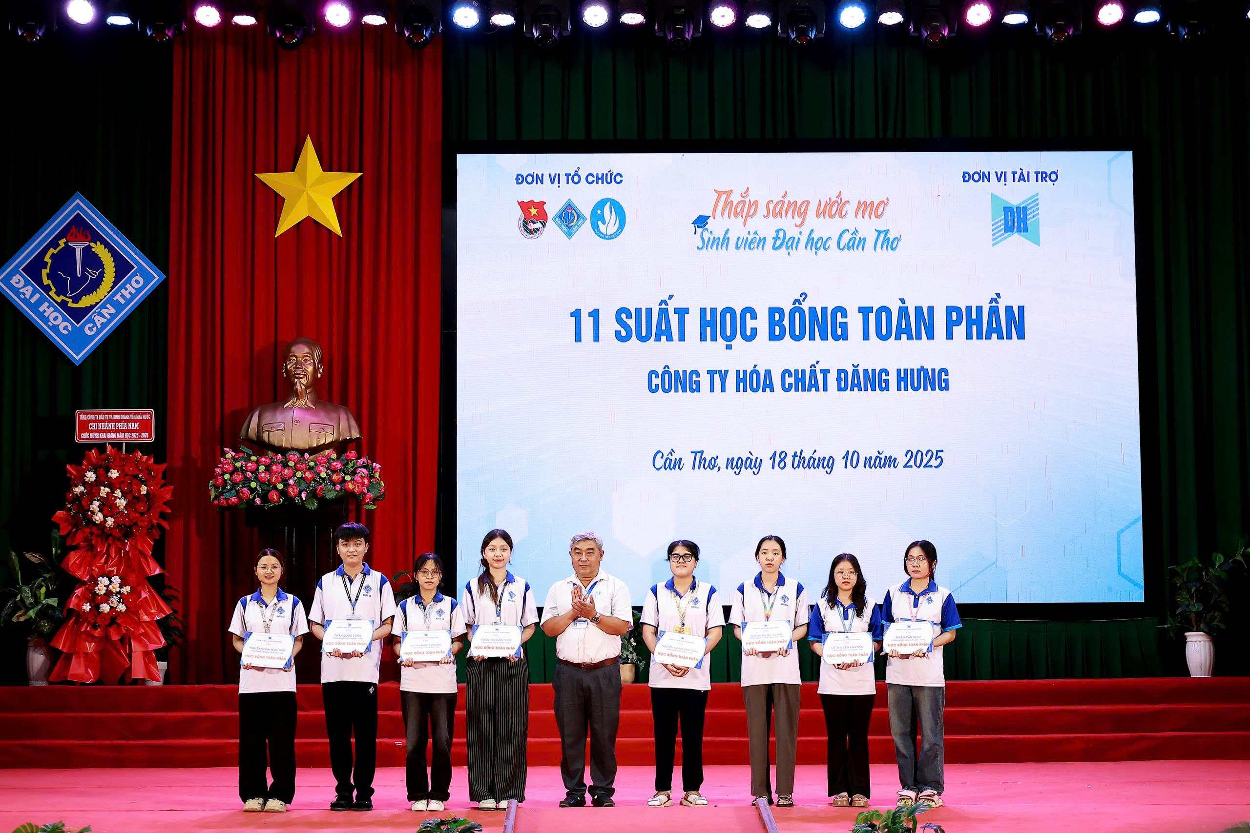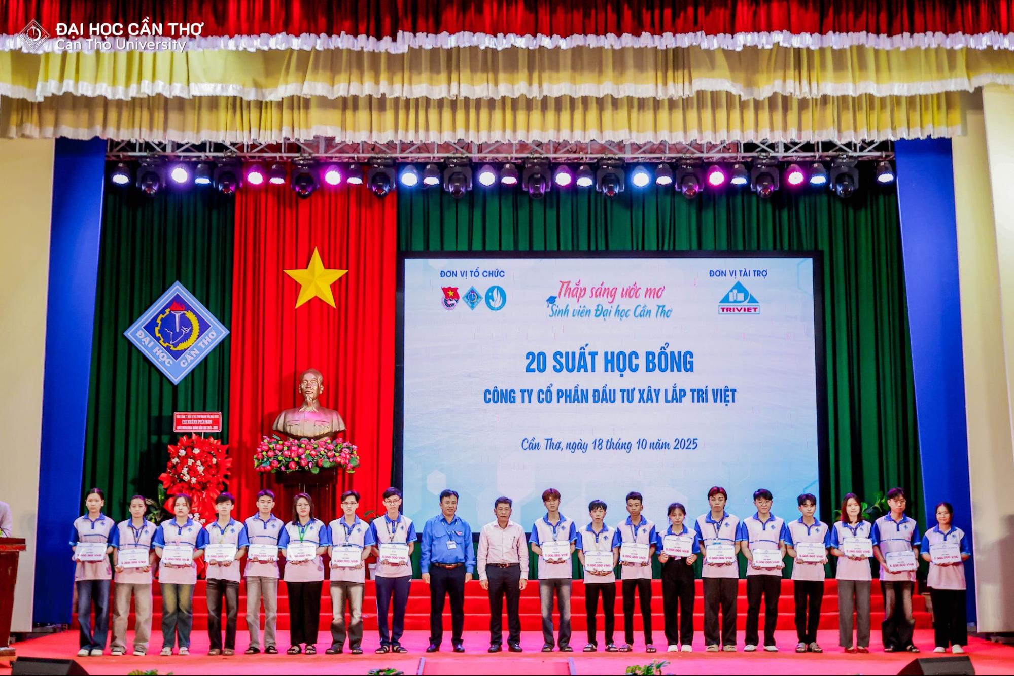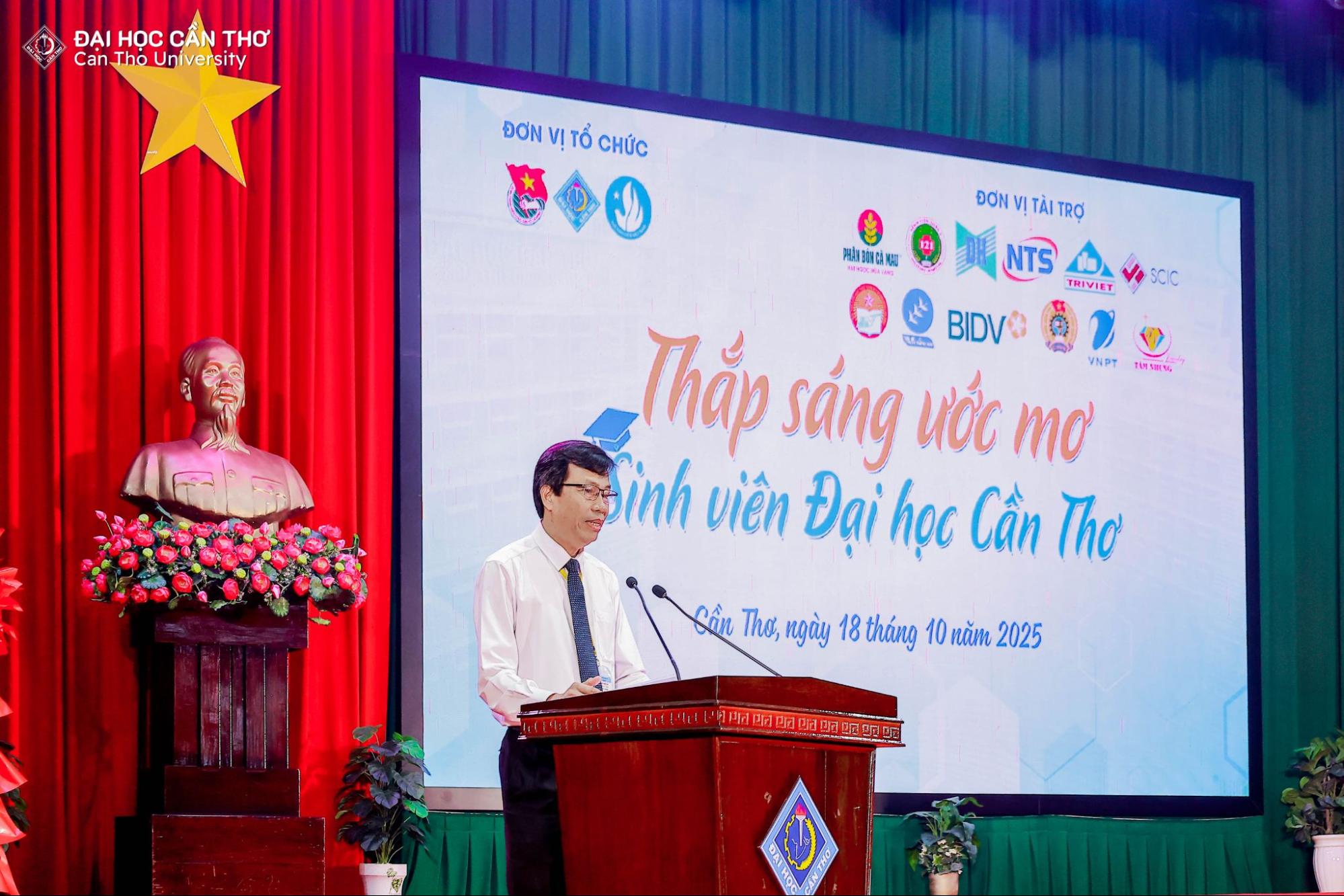 Nhằm thực hiện Nghị quyết Đại hội đại biểu Đoàn TNCS Hồ Chí Minh Đại học Cần Thơ lần thứ XXI, nhiệm kỳ 2024-2027; cũng như để khuyến khích tinh thần học tập, tôn vinh những sinh viên xuất sắc và lan tỏa giá trị cao đẹp, chiều ngày 18/10/2025, Đại học Cần Thơ (ĐHCT) long trọng tổ chức Chương trình “Thắp sáng ước mơ - Sinh viên Đại học Cần Thơ” năm 2025. Đây là hoạt động thường niên có ý nghĩa nhân văn sâu sắc, nhằm tiếp thêm nghị lực, khích lệ tinh thần học tập và hỗ trợ thiết thực cho sinh viên có hoàn cảnh khó khăn vững bước trên con đường chinh phục tri thức.