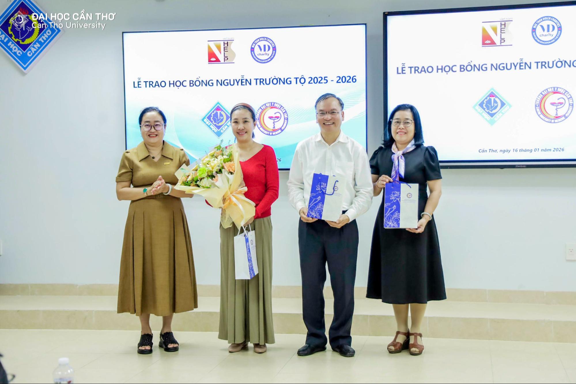 Chiều ngày 16/01/2026, Đại học Cần Thơ (ĐHCT) phối hợp cùng Quỹ Y tế, Văn hóa và Giáo dục Việt Nam (Vietnam Health, Education and Literature Projects – VNHELP) và Trường Đại học Y Dược Cần Thơ tổ chức chương trình trao học bổng Nguyễn Trường Tộ năm học 2025 - 2026 đến 134 sinh viên của ĐHCT và Trường Đại học Y Dược Cần Thơ, nhằm kịp thời động viên, khích lệ tinh thần học tập và hỗ trợ sinh viên có hoàn cảnh khó khăn, giàu ý chí, nỗ lực vươn lên trong học tập và rèn luyện.