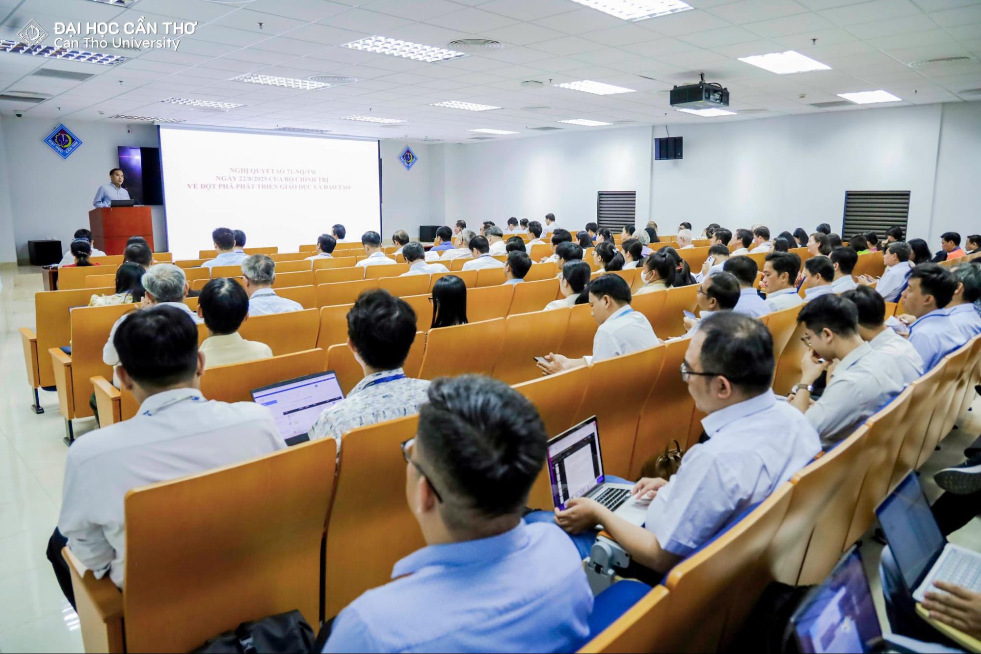 Việc nghiên cứu, quán triệt Luật Giáo dục sửa đổi, Luật Giáo dục đại học và các Nghị quyết của Quốc hội về đột phá phát triển giáo dục và đào tạo có ý nghĩa đặc biệt quan trọng trong bối cảnh đất nước đang bước vào giai đoạn phát triển mới, với yêu cầu cao về nguồn nhân lực chất lượng cao, khoa học – công nghệ và đổi mới sáng tạo. Những chủ trương, chính sách mới thể hiện quyết tâm mạnh mẽ của Đảng và Nhà nước trong việc hoàn thiện thể chế, tháo gỡ các điểm nghẽn về tự chủ đại học, nghiên cứu khoa học và chuyển giao công nghệ; đồng thời tạo hành lang pháp lý thuận lợi để các cơ sở giáo dục đại học phát triển. Trong đó ĐHCT phát huy vai trò trung tâm tri thức, đào tạo nhân lực, phục vụ phát triển bền vững vùng Đồng bằng sông Cửu Long và cả nước.