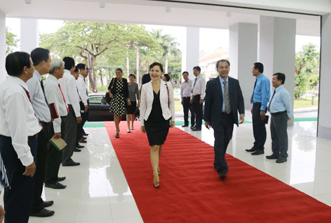 Bà Cecilia Piccioni, Đại sứ đặc mệnh toàn quyền Italia tại Việt Nam phát biểu trong buổi làm việc (phải) |