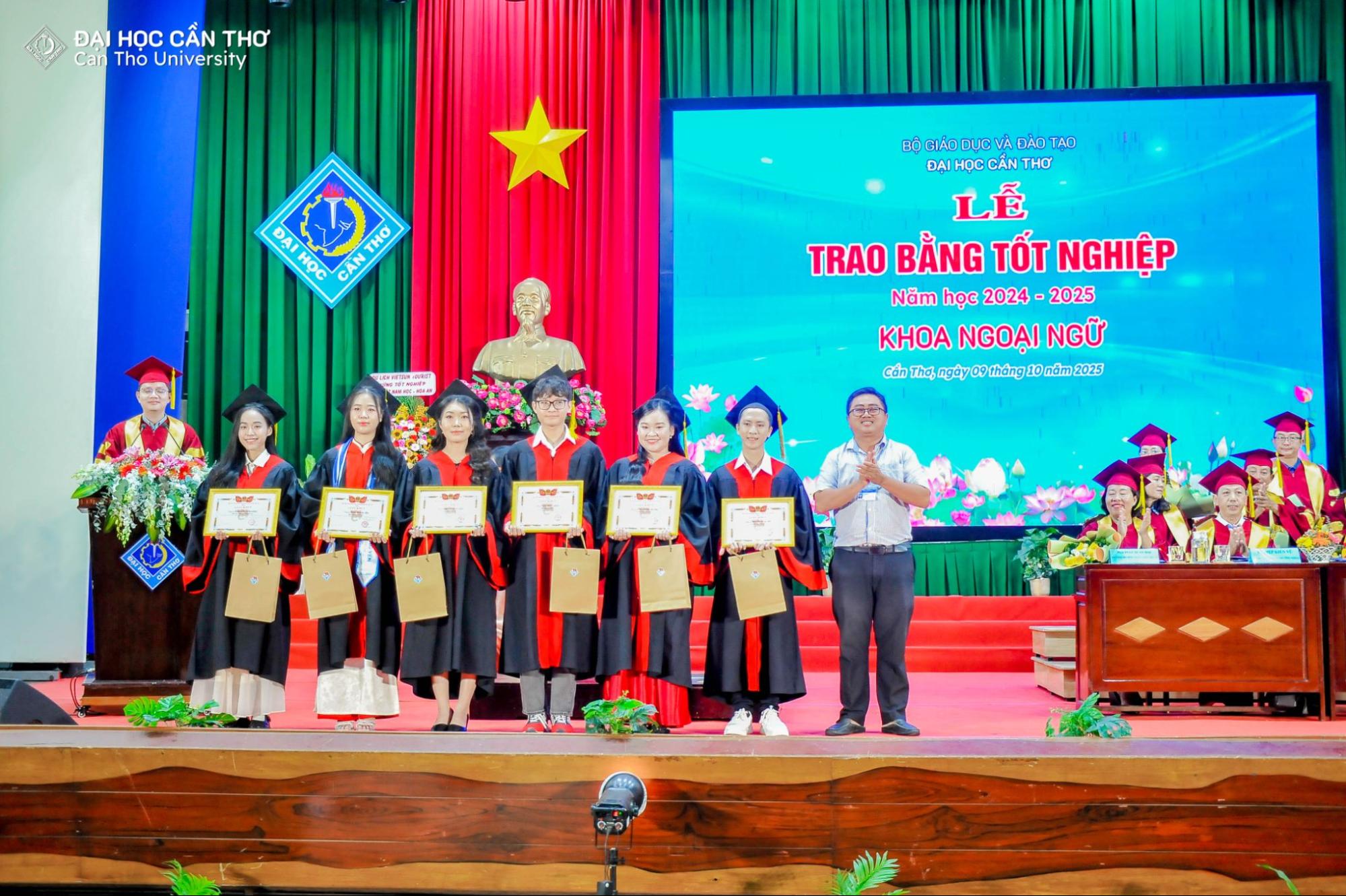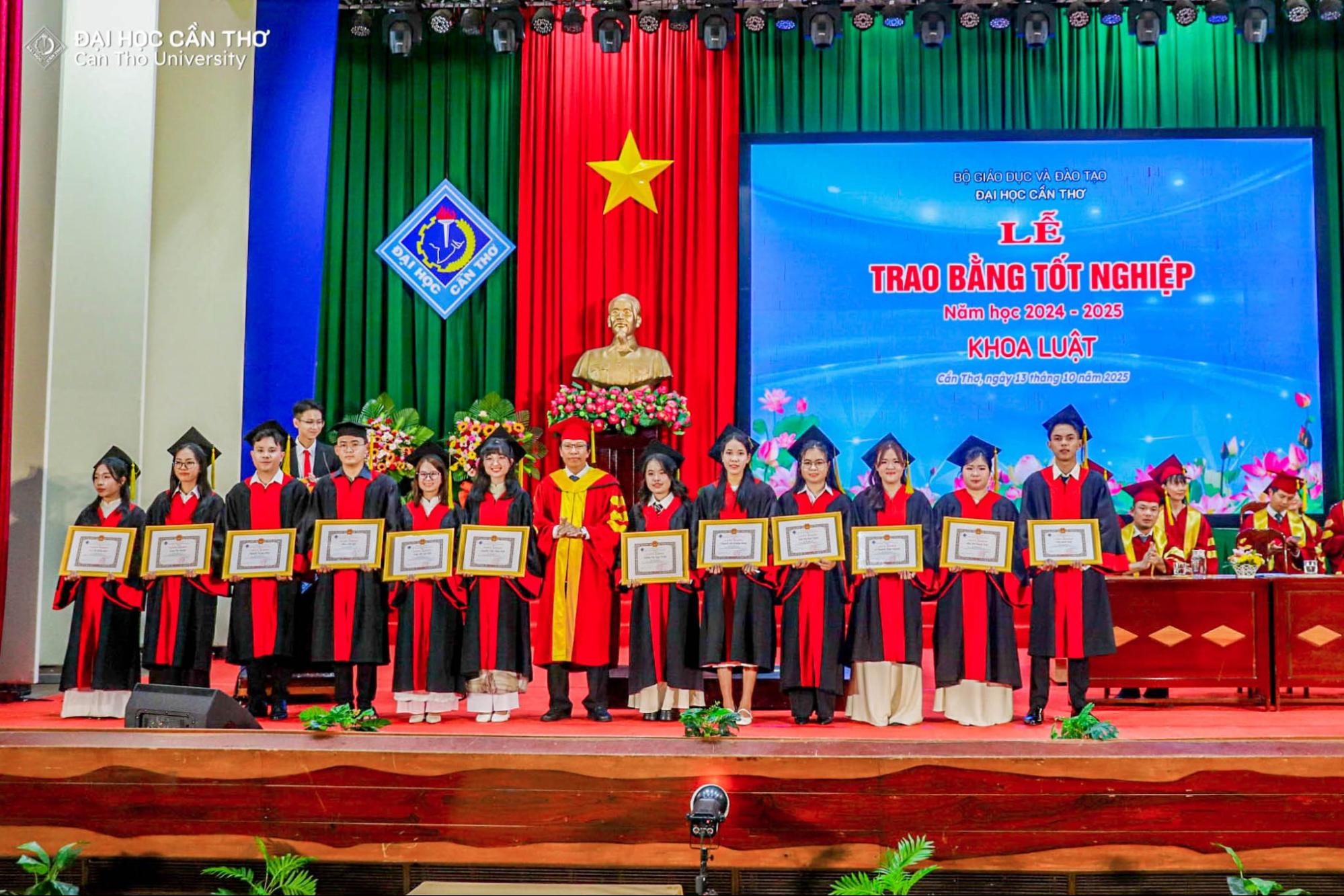 Từ ngày 03 đến 13/10/2025, Đại học Cần Thơ (ĐHCT) tổ chức Lễ trao bằng tốt nghiệp đại học chính quy đợt 2, năm 2025 cho gần 6.000 tân cử nhân, kỹ sư thuộc 13 đơn vị đào tạo trực thuộc ĐHCT. Các buổi lễ được tổ chức tại Hội trường Rùa và phát trực tiếp trên các nền tảng Youtube (www.youtube.com/ctudhct) và Facebook (www.facebook.com/CTUDHCT), góp phần lan tỏa không khí trang trọng và tự hào đến đông đảo người học, phụ huynh và cựu sinh viên.