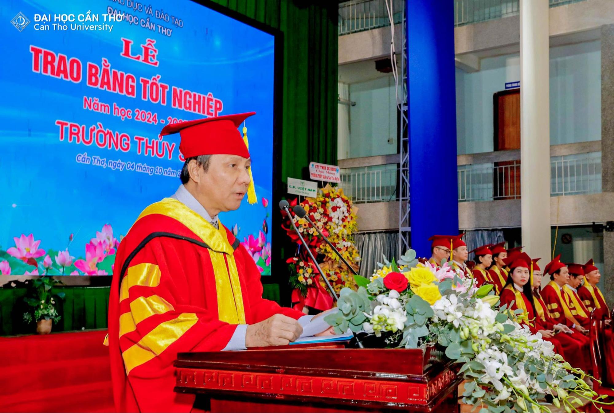 GS.TS. Vũ Ngọc Út - Hiệu trưởng Trường Thủy sản phát biểu tại lễ tốt nghiệp