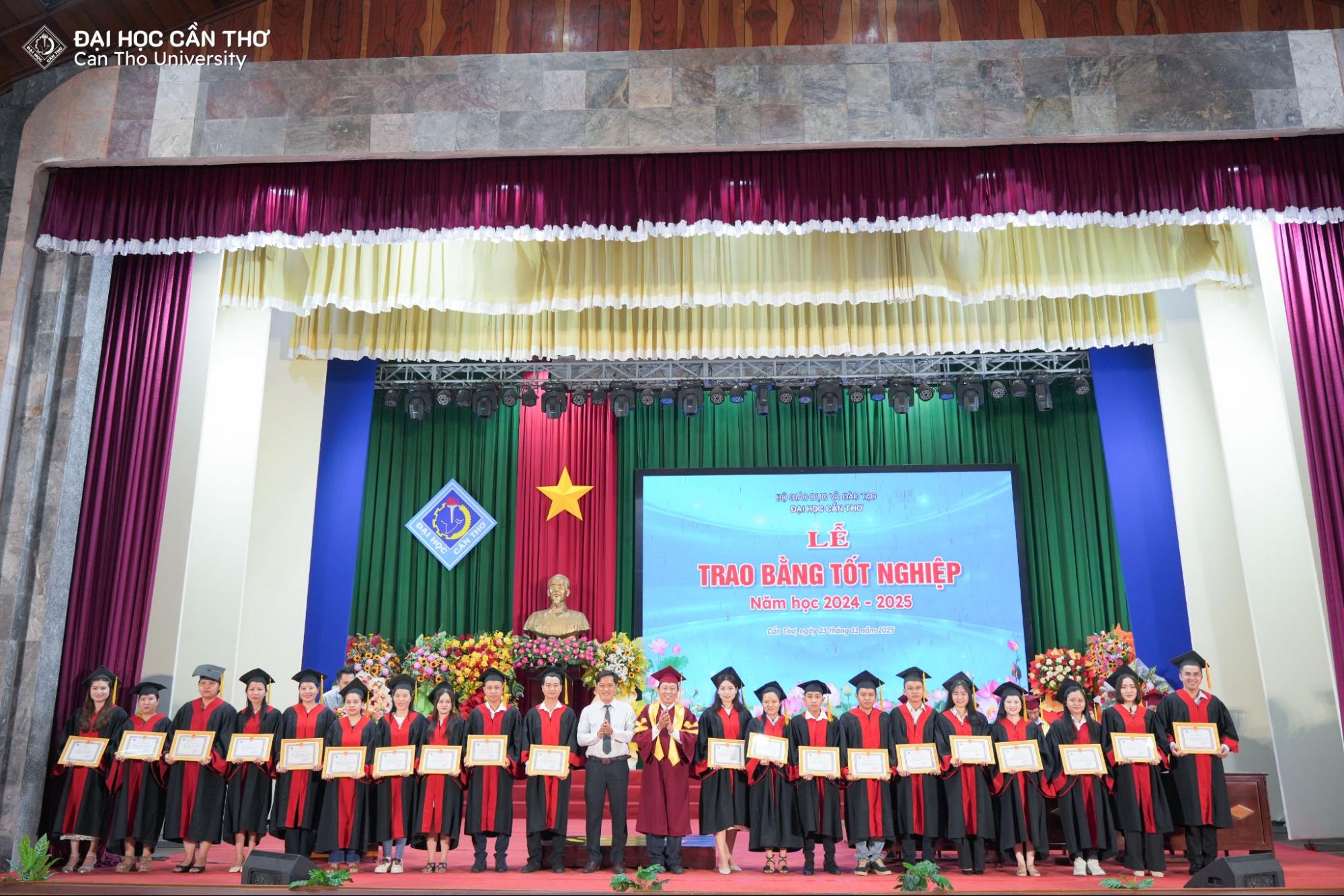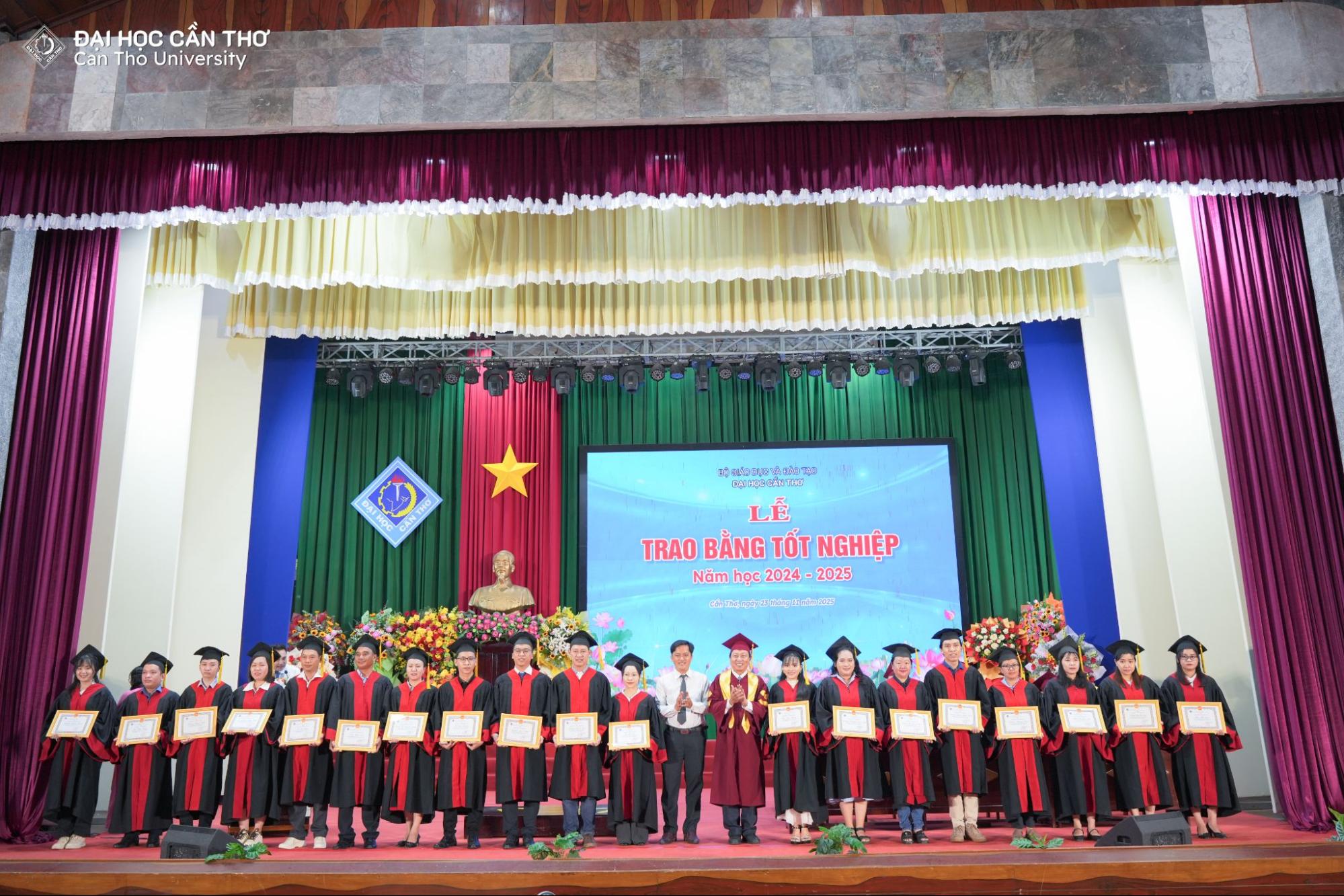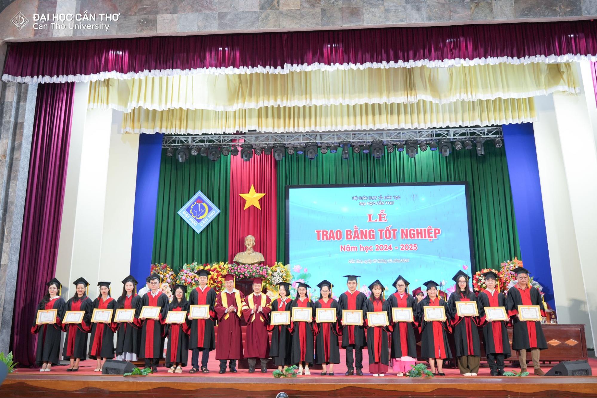 Sáng ngày 23/11/2025, Đại học Cần Thơ (ĐHCT) tổ chức Lễ trao bằng tốt nghiệp hệ Vừa làm Vừa học và Đào tạo Từ xa (VLVH & ĐTTX) đợt 2, năm 2025. Tham dự buổi lễ có GS. TS. Nguyễn Chí Ngôn - Phó Chủ tịch Hội đồng Trường, cùng đại diện lãnh đạo và giảng viên phụ trách chuyên môn các đơn vị thuộc Trường; đại diện các đơn vị liên kết đào tạo, các tân cử nhân, kỹ sư và gia đình.
