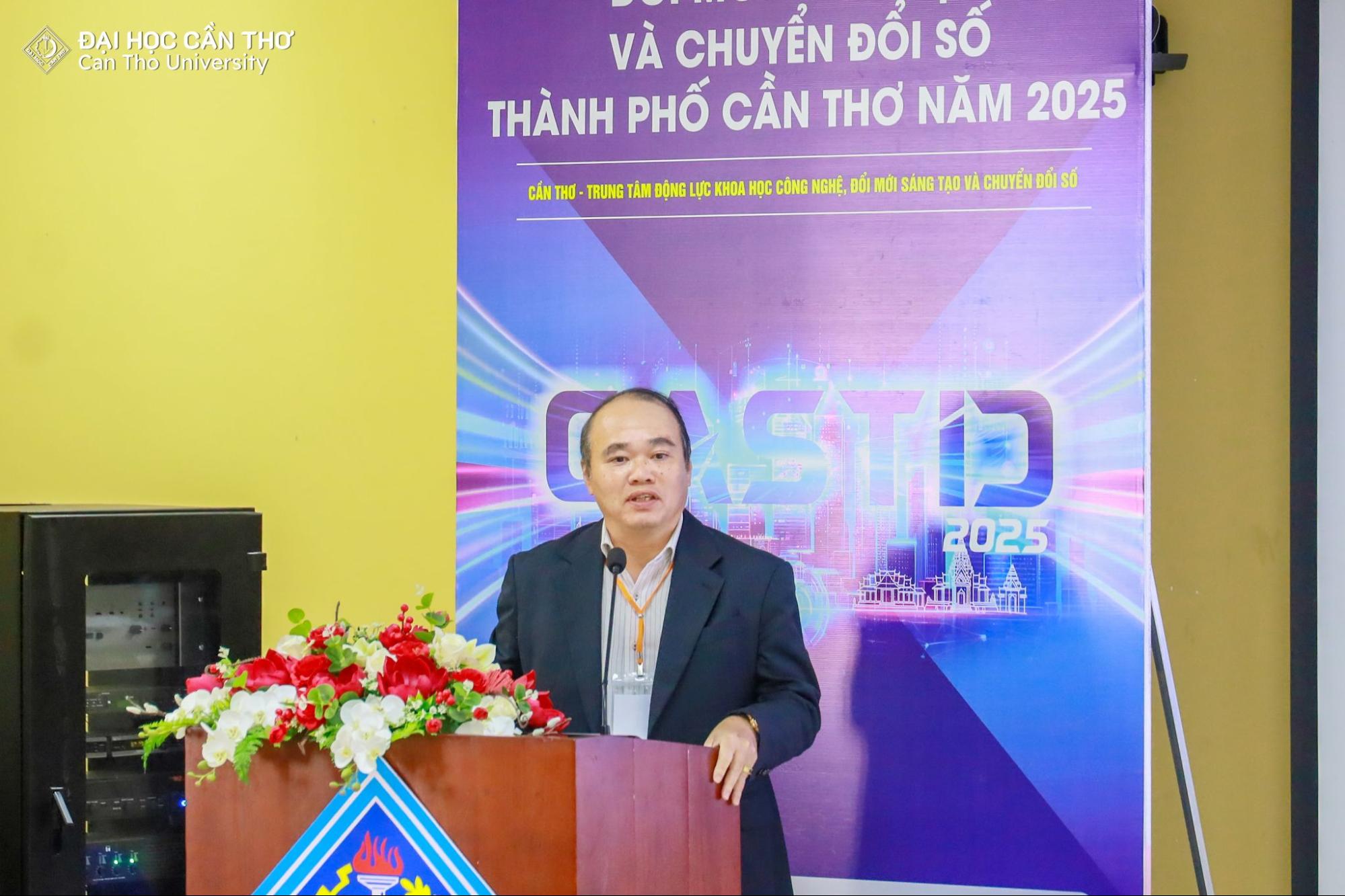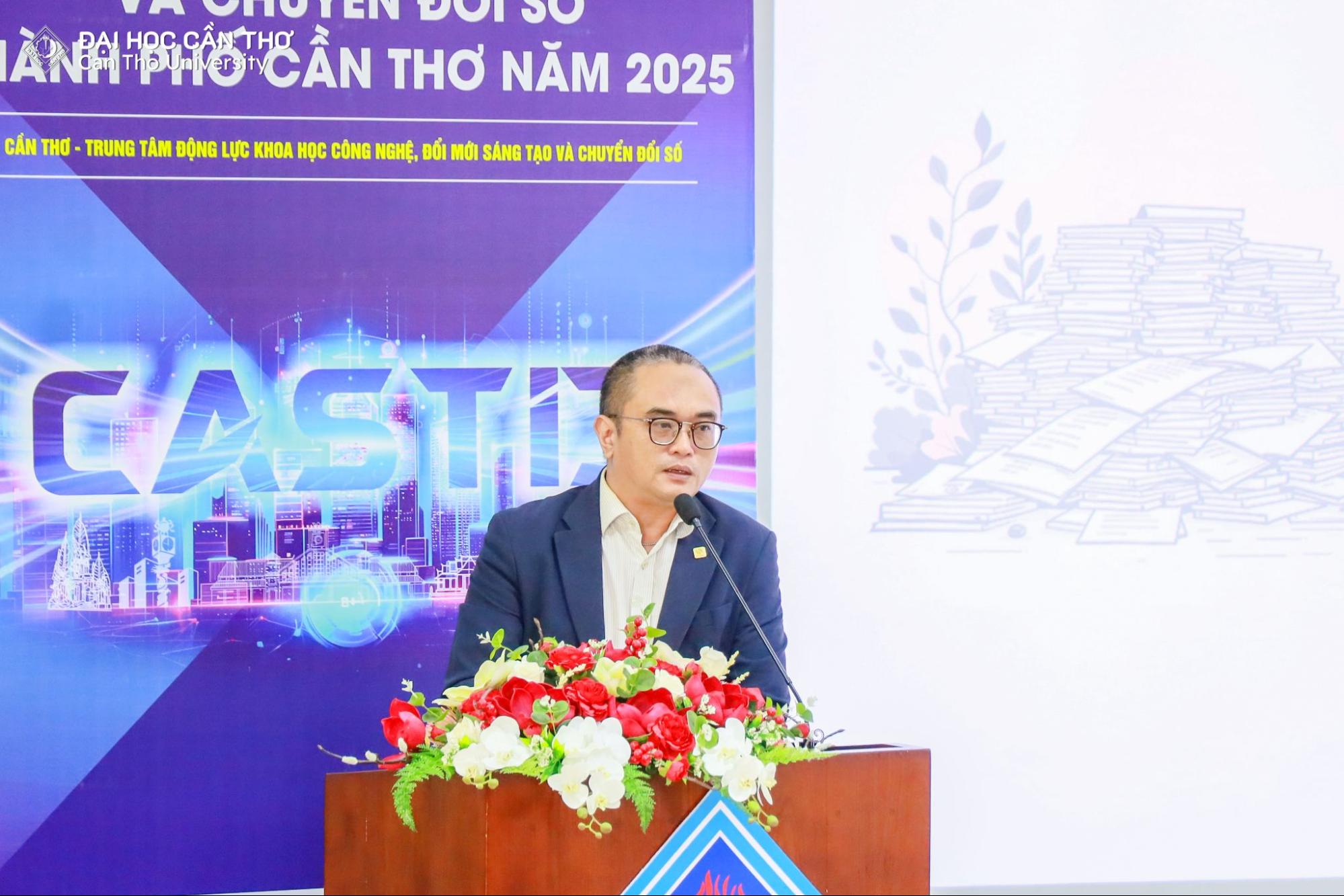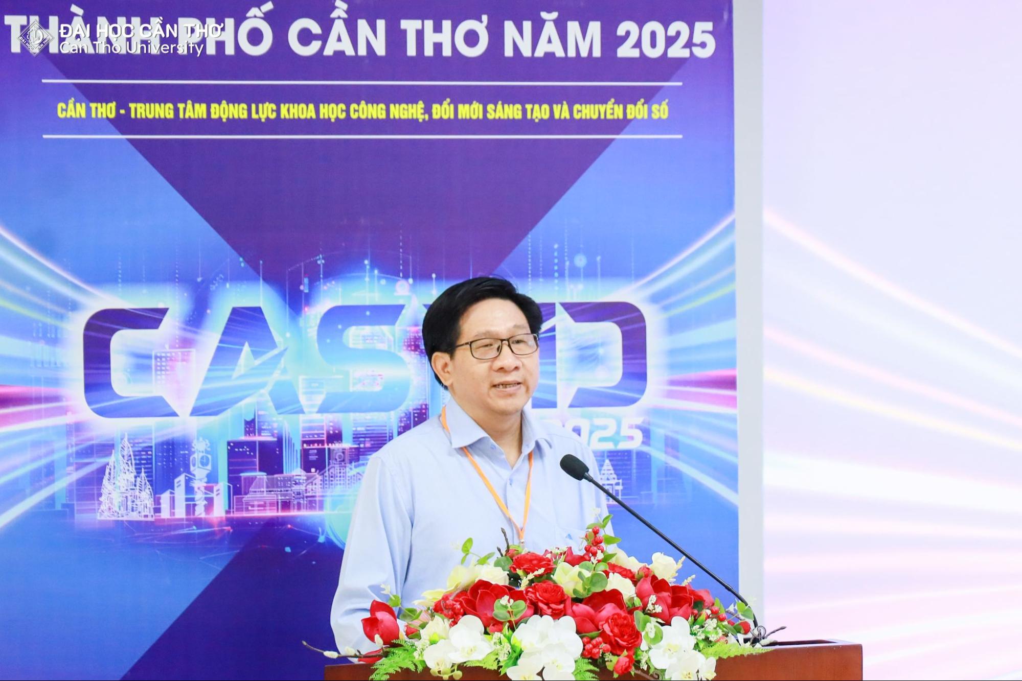 Phát biểu tại hội nghị, PGS. TS. Nguyễn Hiếu Trung - Phó Hiệu trưởng ĐHCT nhấn mạnh ý nghĩa đặc biệt quan trọng của việc tổ chức hội nghị trong bối cảnh hiện nay, khi AI đang tác động mạnh mẽ đến mọi lĩnh vực của đời sống. Đặc biệt, cần phát huy vai trò trung tâm của trí tuệ con người trong việc làm chủ và sử dụng hiệu quả các công cụ AI nhằm nâng cao chất lượng và hiệu quả công việc. Phó Hiệu trưởng mong muốn các diễn giả sẽ tập trung thảo luận những vấn đề then chốt, đồng thời tham mưu cho chính quyền thành phố các giải pháp khả thi để triển khai AI một cách hiệu quả, trong đó hạ tầng kỹ thuật đóng vai trò hết sức quan trọng. Đồng thời khẳng định Nhà trường luôn hướng đến sứ mệnh phục vụ cộng đồng, phát triển toàn diện và tạo ra những giá trị ưu việt cho xã hội.