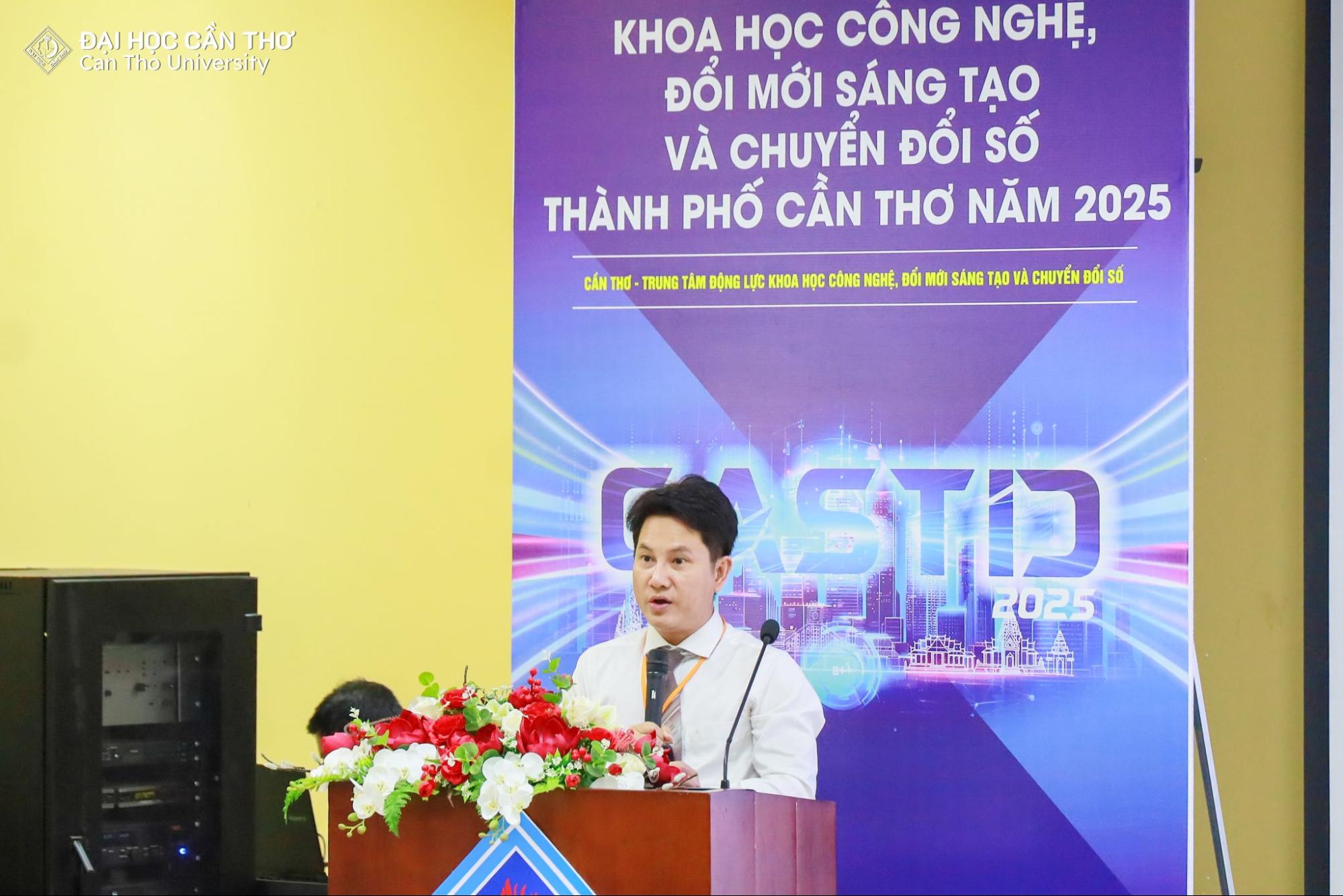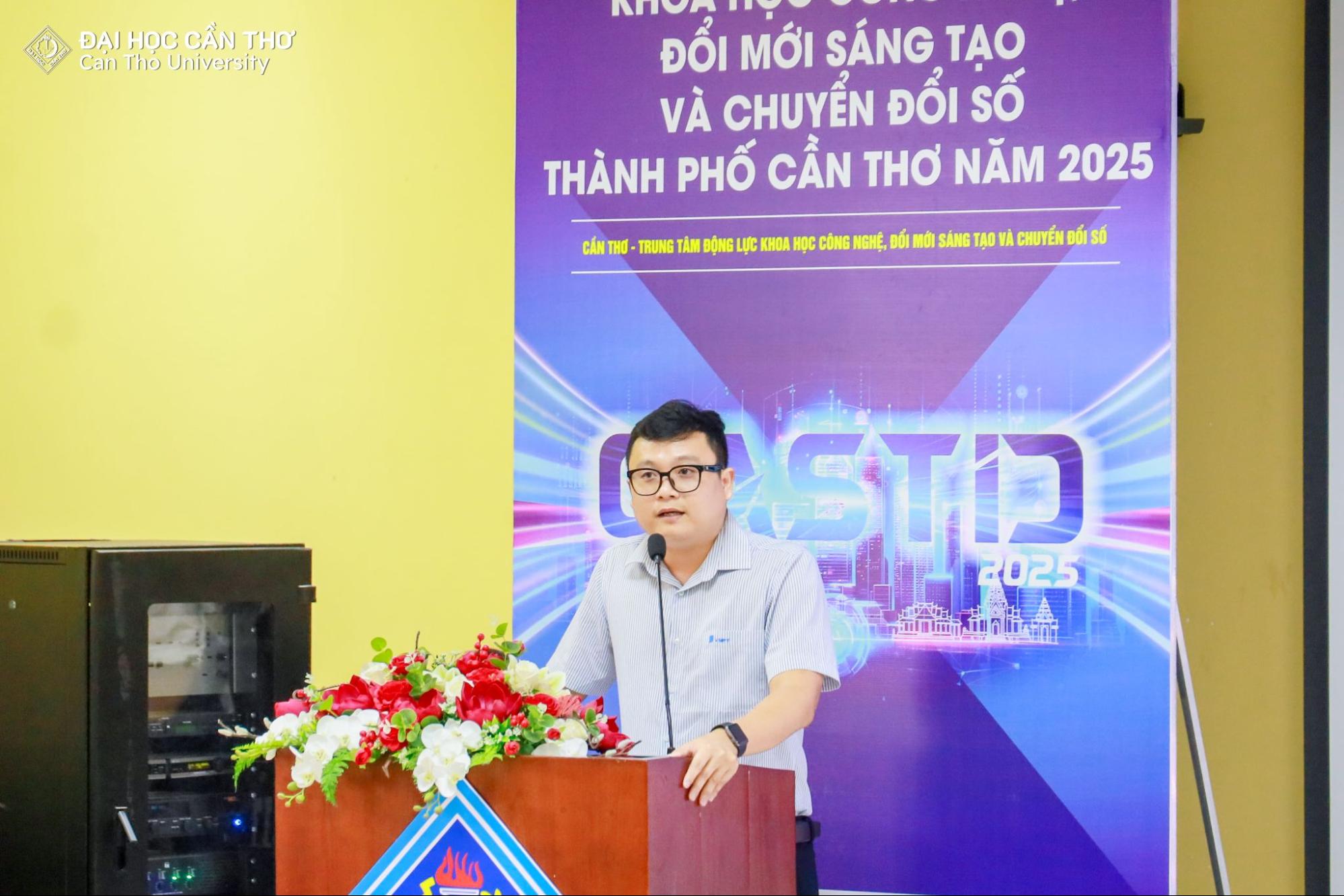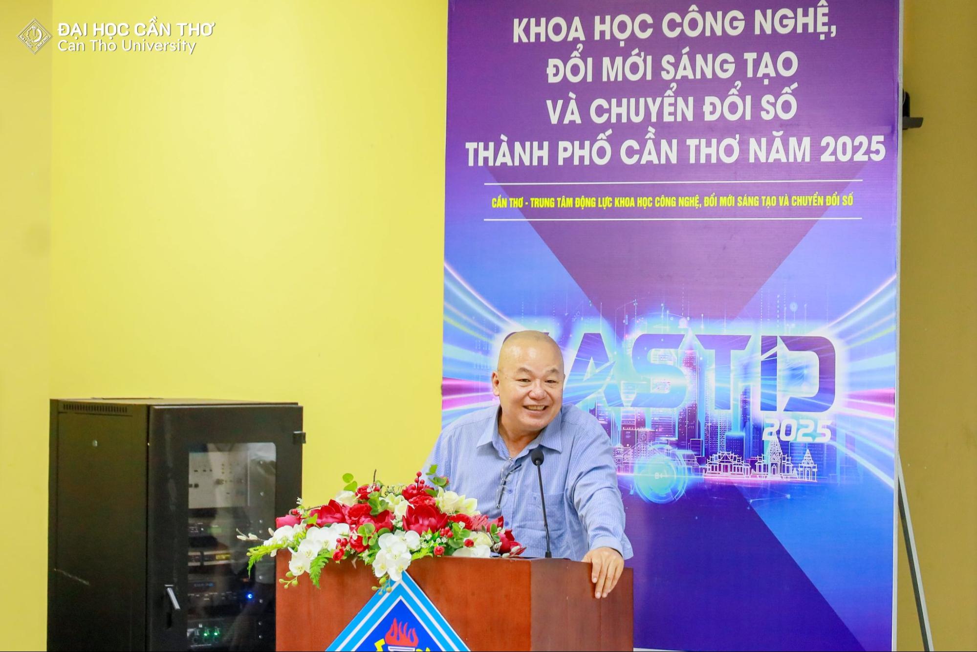 Phát biểu tại hội nghị, PGS. TS. Nguyễn Hiếu Trung - Phó Hiệu trưởng ĐHCT nhấn mạnh ý nghĩa đặc biệt quan trọng của việc tổ chức hội nghị trong bối cảnh hiện nay, khi AI đang tác động mạnh mẽ đến mọi lĩnh vực của đời sống. Đặc biệt, cần phát huy vai trò trung tâm của trí tuệ con người trong việc làm chủ và sử dụng hiệu quả các công cụ AI nhằm nâng cao chất lượng và hiệu quả công việc. Phó Hiệu trưởng mong muốn các diễn giả sẽ tập trung thảo luận những vấn đề then chốt, đồng thời tham mưu cho chính quyền thành phố các giải pháp khả thi để triển khai AI một cách hiệu quả, trong đó hạ tầng kỹ thuật đóng vai trò hết sức quan trọng. Đồng thời khẳng định Nhà trường luôn hướng đến sứ mệnh phục vụ cộng đồng, phát triển toàn diện và tạo ra những giá trị ưu việt cho xã hội.