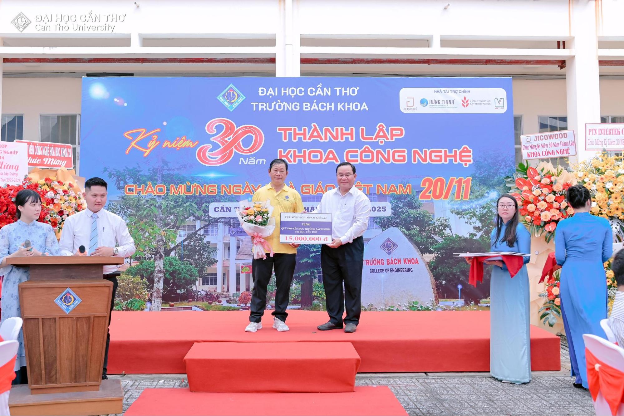 Đặc biệt, đại diện lãnh đạo các công ty, doanh nghiệp là cựu sinh viên Khoa đã trao tặng Quỹ khuyến học Trường Bách khoa tổng số tiền hơn 100 triệu đồng, thể hiện tinh thần “uống nước nhớ nguồn” và gắn kết bền chặt giữa nhà trường với các thế hệ sinh viên. Đây là nguồn động viên tinh thần to lớn, tiếp thêm sức mạnh cho các thế hệ sinh viên hôm nay trên hành trình chinh phục tri thức và kiến tạo những giá trị đột phá cho cộng đồng và xã hội.