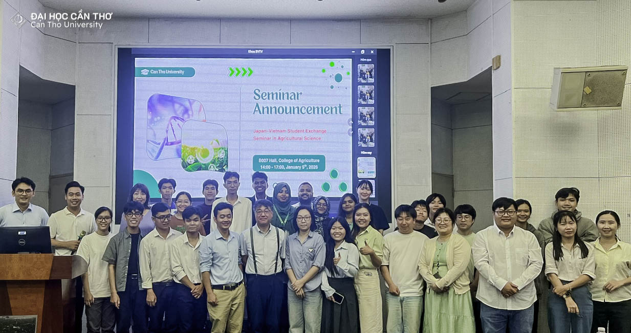Sáng ngày 15/01/2026, Trường Nông nghiệp – Đại học Cần Thơ (ĐHCT) tổ chức buổi tổng kết và trao chứng nhận hoàn thành chương trình trao đổi tín chỉ cho 05 sinh viên ngành Thú y đến từ Trường Đại học Nông nghiệp Sher-e-Bangla (Sher-e-Bangla Agricultural University), Bangladesh. Buổi lễ diễn ra trong không khí trang trọng, thân mật với sự tham dự của đại diện Ban Giám hiệu Trường Nông nghiệp, Phòng Đối ngoại và Đào tạo Quốc tế, Ban Chủ nhiệm Khoa Thú y cùng các giảng viên trực tiếp giảng dạy chương trình.