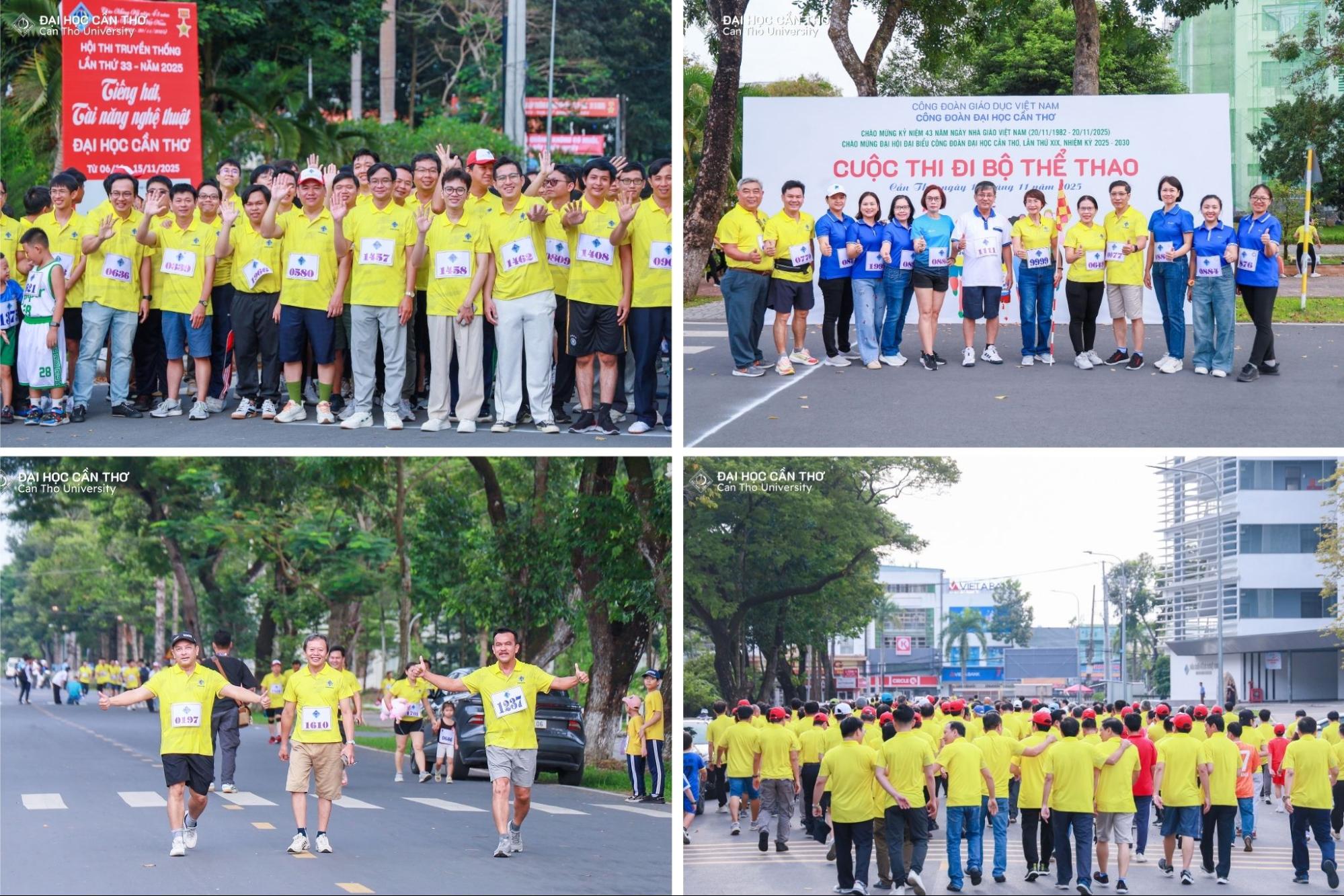 Hội thao Truyền thống Công đoàn Đại học Cần Thơ (ĐHCT) năm 2025, diễn ra từ 12/10 đến 16/11/2025, đã trở thành hoạt động nổi bật trong công tác chăm lo đời sống tinh thần cho viên chức và người lao động. Với 11 môn thi và 30 nội dung tranh tài, hội thao thu hút gần 2.000 lượt vận động viên, tạo nên không khí thi đua sôi nổi, lan tỏa tinh thần đoàn kết và rèn luyện thể chất trong toàn Trường. Khép lại hơn một tháng tranh tài, Lễ Bế mạc ngày 16/11/2025 được tổ chức nhằm vinh danh các tập thể, cá nhân có thành tích xuất sắc, đánh dấu một mùa hội thao thành công. Ngay trong buổi sáng cùng ngày, môn thi cuối cùng nội dung Đi bộ thể thao dành cho viên chức, người lao động đã diễn ra trong không khí hào hứng, nhận được sự hưởng ứng đông đảo của viên chức, người lao động.