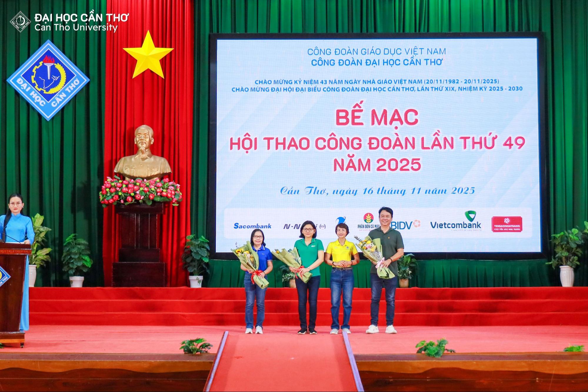 Hội thao năm nay còn nhận được sự đồng hành quý báu từ các đơn vị tài trợ. Thay mặt Ban Tổ chức, ThS. Dương Thị Tuyền gửi lời tri ân sâu sắc đến các nhà đồng hành: Công ty Cổ phần Phân bón dầu khí Cà Mau, Công ty TNHH MTV thể thao AMIGO, Công ty VNPT Cần Thơ, Ngân hàng BIDV chi nhánh Cần Thơ, Ngân hàng Sacombank Chi nhánh Cần Thơ, Ngân hàng VCB Chi nhánh Cần Thơ, Công ty Cổ phần Yến sào Nha Trang