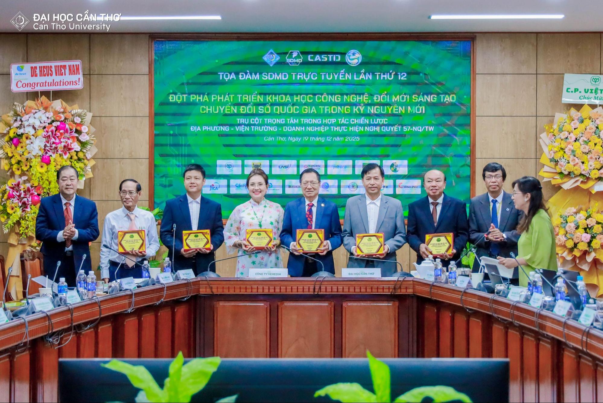 Tiếp nối những kết quả tích cực của chuỗi hoạt động thường kỳ, sáng ngày 19/12/2025, ĐHCT tổ chức Tọa đàm SDMD lần thứ 12 theo hình thức trực tiếp kết hợp trực tuyến với chủ đề “Đột phá phát triển Khoa học Công nghệ, đổi mới sáng tạo, chuyển đổi số quốc gia trong kỷ nguyên mới”. Chương trình được diễn ra trực tiếp tại Nhà Điều hành - ĐHCT và được phát trực tiếp trên Fanpage SDMD 2045 (https://www.facebook.com/sdmd2045), ĐHCT (https://www.facebook.com/CTUDHCT) và trên nền tảng Zoom. Đây là một trong những hoạt động trọng điểm đồng hành cùng các sự kiện khác diễn ra trong Tuần lễ Khoa học công nghệ, Đổi mới sáng tạo và Chuyển đổi số thành phố Cần Thơ năm 2025 (CASTID 2025).