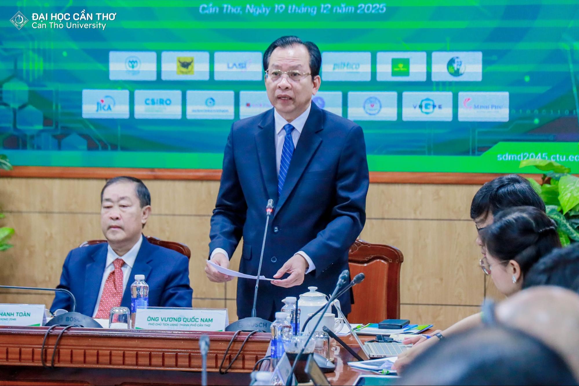 Phát biểu tại Tọa đàm, ông Vương Quốc Nam bày tỏ mong muốn thông qua Diễn đàn SDMD và Tuần lễ Khoa học công nghệ, Đổi mới sáng tạo và Chuyển đổi số thành phố Cần Thơ năm 2025 (CASTID 2025), thành phố sẽ tiếp tục nhận được nhiều ý kiến đóng góp, khuyến nghị chính sách và sáng kiến thiết thực; qua đó giúp thành phố và vùng ĐBSCL xác định rõ hơn các công nghệ chiến lược, mô hình hợp tác hiệu quả và giải pháp đột phá cho phát triển khoa học công nghệ, đổi mới sáng tạo và chuyển đổi số trong giai đoạn tới. Ủy ban Nhân dân thành phố Cần Thơ cam kết sẽ tiếp tục đồng hành, tạo điều kiện thuận lợi về cơ chế, chính sách, và môi trường đầu tư - nghiên cứu - đổi mới sáng tạo; tăng cường kết nối giữa Nhà nước - Viện Trường - Doanh nghiệp; để khoa học công nghệ, đổi mới sáng tạo, và chuyển đối số thực sự trở thành động lực phát triển bền vững, không chỉ cho thành phố Cần Thơ mà cho toàn khu vực.