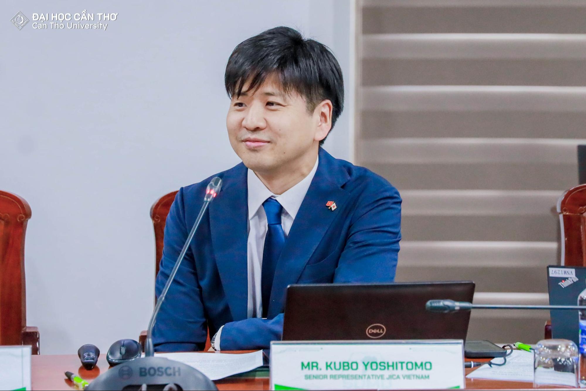 Ông Kubo Yoshitomo - Phó trưởng đại diện JICA Việt Nam trình bày tham luận: “Hợp tác Địa phương – Viện Trường – Doanh nghiệp thúc đẩy phát triển Khoa học công nghệ – Đổi mới sáng tạo – Chuyển đổi số và phát triển bền vững Đồng bằng sông Cửu Long”