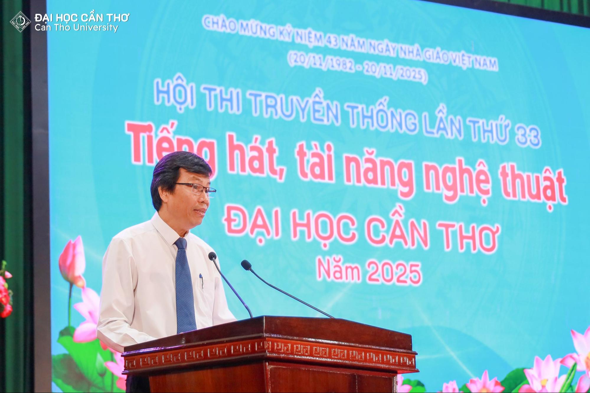 Từ ngày 06 đến 15/11/2025, Đại học Cần Thơ (ĐHCT) tổ chức Hội thi truyền thống “Tiếng hát, tài năng nghệ thuật ĐHCT” lần thứ 33 – năm 2025, hướng đến chào mừng Ngày Nhà giáo Việt Nam 20/11, đồng thời tiếp tục phát huy phong trào văn hóa – văn nghệ trong toàn Trường. Sau 10 ngày thi diễn sôi nổi, tối 15/11/2025, tại Hội trường Rùa, Ban Tổ chức đã tổ chức đêm chung kết và trao giải thưởng, khép lại một mùa hội thi thành công, tràn đầy cảm xúc và để lại dấu ấn đẹp trong lòng người tham dự.
