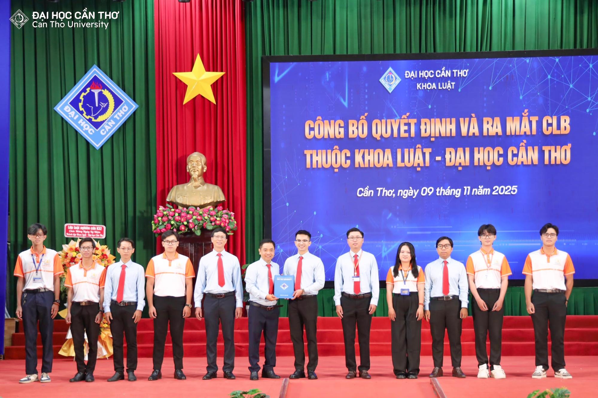 Cũng tại sự kiện, Khoa Luật đã công bố và trao quyết định thành lập 03 Câu lạc bộ chuyên môn trực thuộc Khoa, gồm: Câu lạc bộ Kỹ năng tư pháp, Câu lạc bộ Tiếng Anh pháp lý và Câu lạc bộ Định hướng nghề luật. Việc ra mắt các câu lạc bộ đánh dấu bước phát triển mới trong hoạt động học thuật và rèn luyện kỹ năng cho sinh viên, tạo môi trường học tập năng động, nơi tri thức được gắn kết với thực hành, góp phần hiện thực hóa định hướng đào tạo toàn diện của Khoa Luật – ĐHCT.