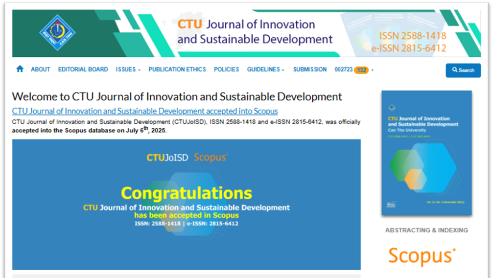 Tạp chí khoa học của Đại học Cần Thơ - CTU Journal of Innovation and Sustainable Development - được SCImago xếp hạng Q4 Lượt xem: 77