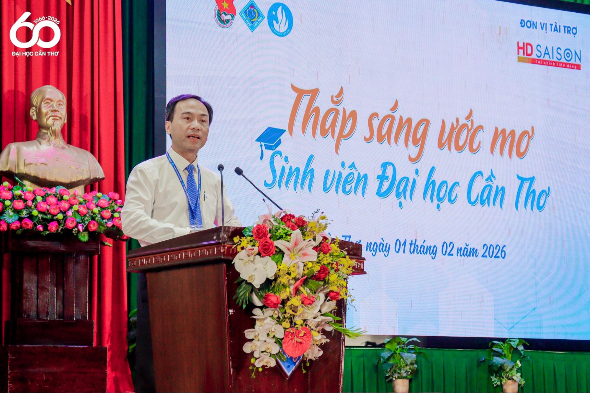 Nhằm thực hiện Nghị quyết Đại hội đại biểu Đoàn TNCS Hồ Chí Minh Đại học Cần Thơ lần thứ XXI nhiệm kỳ 2025–2030, đồng thời khuyến khích tinh thần học tập, tiếp sức cho sinh viên có hoàn cảnh khó khăn nhưng không ngừng nỗ lực vươn lên trong học tập và rèn luyện, chiều ngày 01/02/2026, Đoàn TNCS Hồ Chí Minh Đại học Cần Thơ (ĐHCT) phối hợp cùng nhà tài trợ tổ chức chương trình “Thắp sáng ước mơ sinh viên Đại học Cần Thơ” năm học 2025-2026.