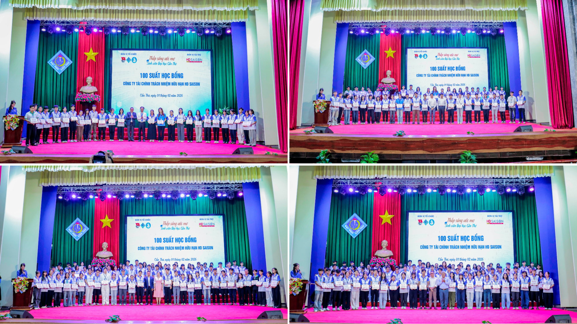 Tại chương trình, Công ty Tài chính TNHH HD SAISON đã trao 100 suất học bổng với tổng trị giá 400 triệu đồng cho các sinh viên có hoàn cảnh khó khăn, đạt thành tích tốt trong học tập và rèn luyện. Đây không chỉ là sự hỗ trợ kịp thời về vật chất mà còn là nguồn động viên tinh thần to lớn, tiếp thêm nghị lực để sinh viên vượt qua khó khăn, kiên trì theo đuổi ước mơ học tập. Bên cạnh đó, Công ty cũng tài trợ 100 triệu đồng nhằm hỗ trợ ĐHCT nâng cấp cơ sở vật chất, trang thiết bị phục vụ công tác giảng dạy và học tập.