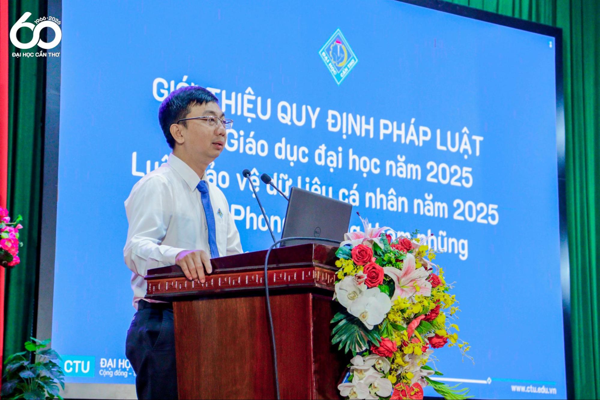 Trong khuôn khổ chương trình, ThS. Lâm Bá Khánh Toàn – Phó Trưởng phòng Pháp chế, ĐHCT đã trình bày nội dung tuyên truyền pháp luật liên quan đến Luật Giáo dục đại học, Luật Phòng, chống tham nhũng; các vấn đề về việc làm và bảo vệ dữ liệu cá nhân, góp phần trang bị thêm kiến thức, nâng cao nhận thức pháp luật cho sinh viên ĐHCT