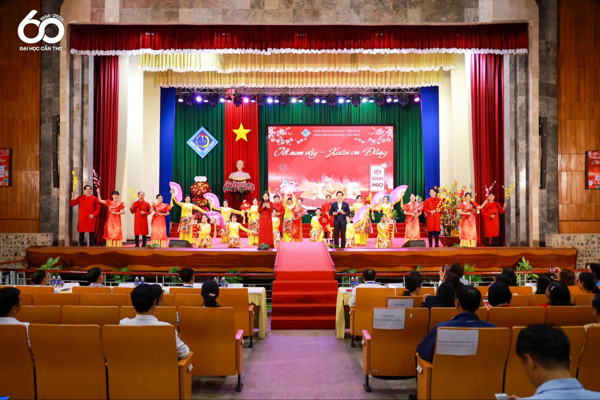 Trong không khí rộn ràng đón Xuân Bính Ngọ, ngày 05/02/2026, Công đoàn Đại học Cần Thơ (ĐHCT) tổ chức chương trình “Tết sum vầy – Xuân ơn Đảng” năm 2026 nhằm chăm lo đời sống vật chất, tinh thần cho đoàn viên công đoàn, viên chức, người lao động; đồng thời lan tỏa tinh thần sẻ chia, hỗ trợ những trường hợp còn khó khăn, góp phần tạo không khí vui Xuân, đón Tết với phương châm “Tất cả đoàn viên, người lao động đều có Tết, vui Tết”.