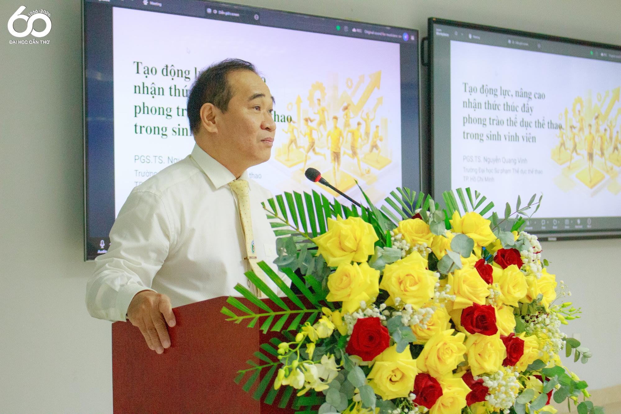 PGS. TS. Nguyễn Quang Vinh - Trường Đại học Sư phạm Thể dục thể thao TP. Hồ Chí Minh trình bày tham luận “Tạo động lực, nâng cao nhận thức thúc đẩy phong trào thể dục thể thao trong sinh viên”