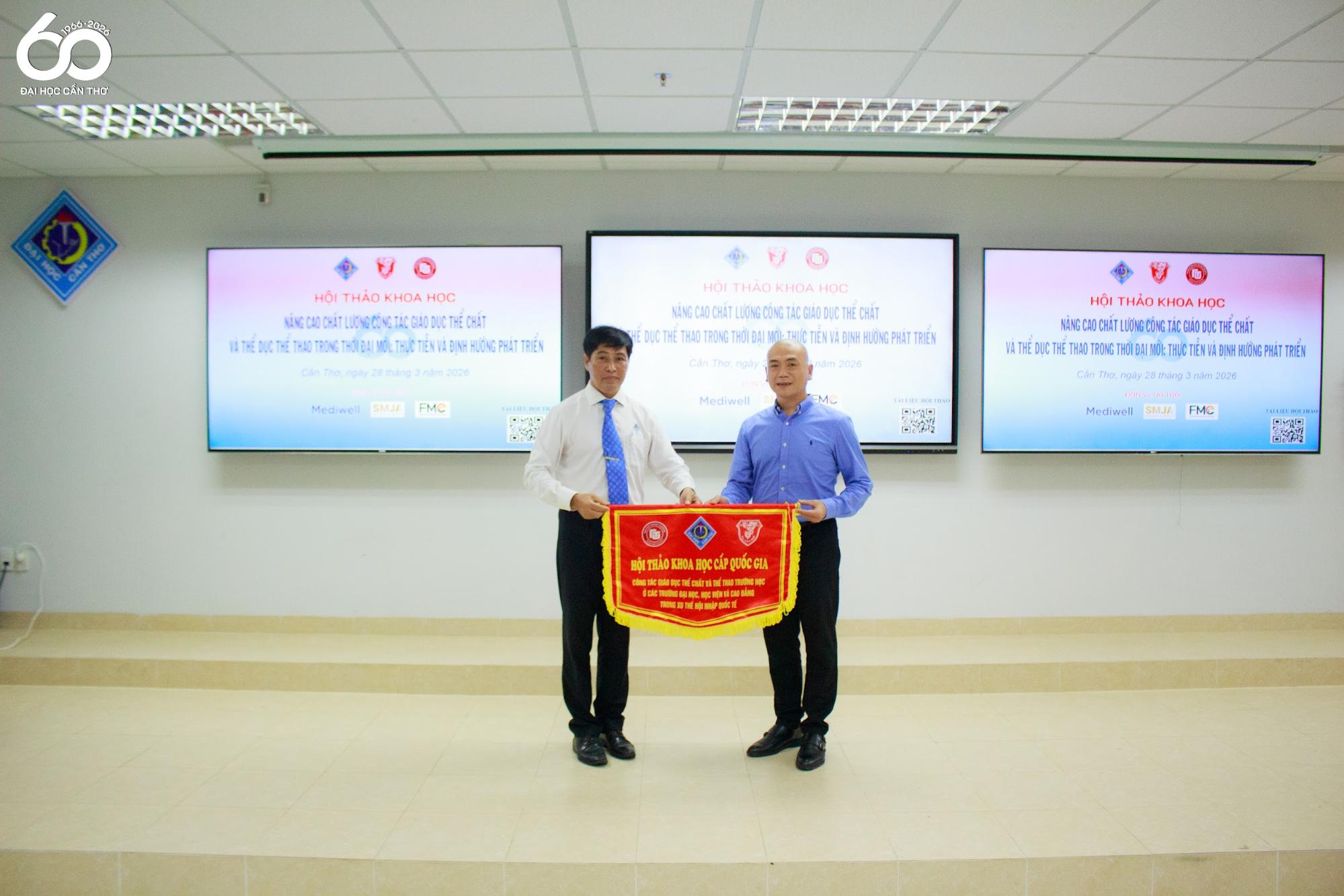 ĐHCT trao cờ đăng cai hội thảo cho Trường Đại học Ngoại Thương, đánh dấu sự tiếp nối hành trình học thuật; mở ra kỳ vọng về những bước phát triển đột phá trong nghiên cứu, đào tạo và nâng cao chất lượng giáo dục thể chất trong thời gian tới