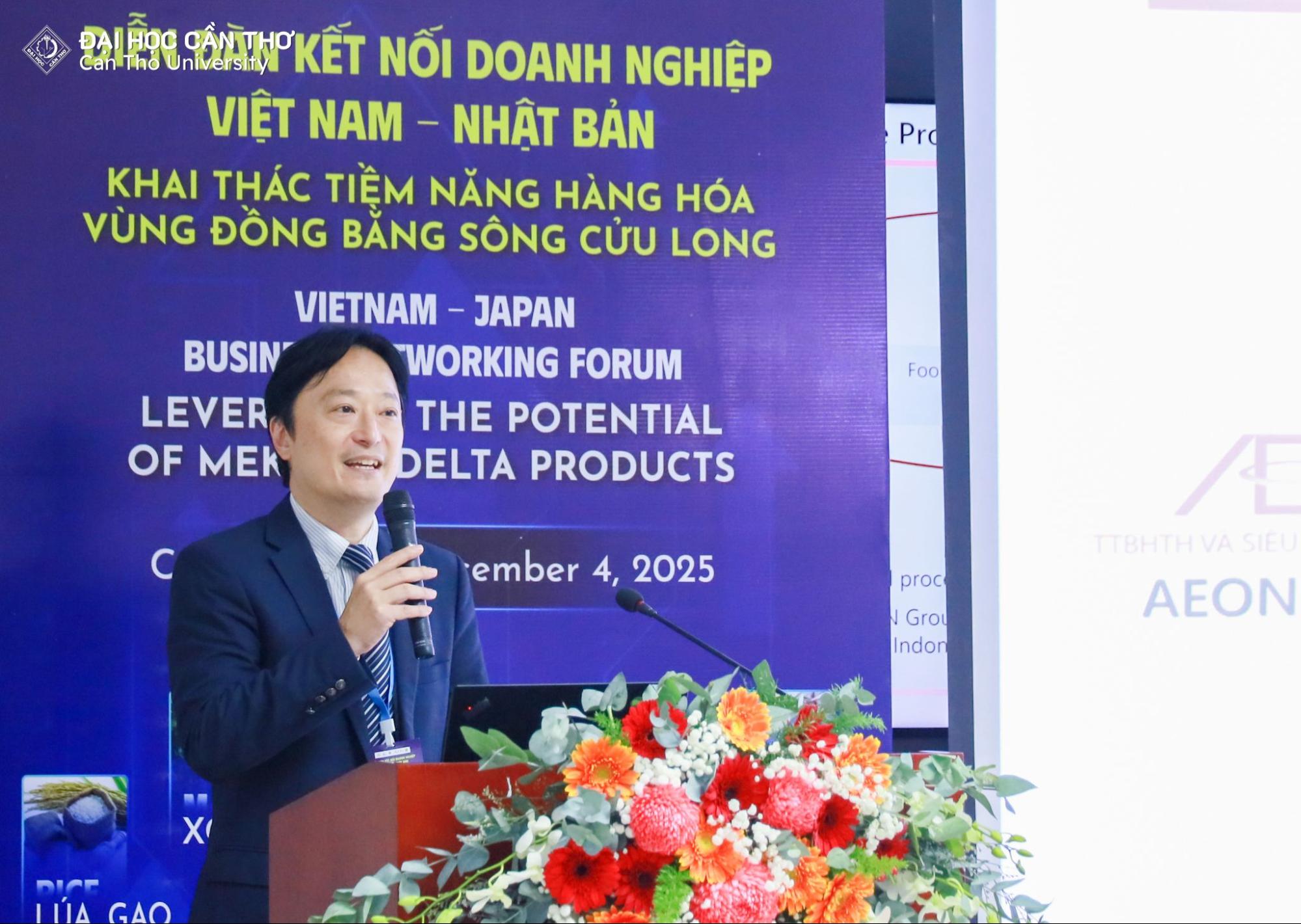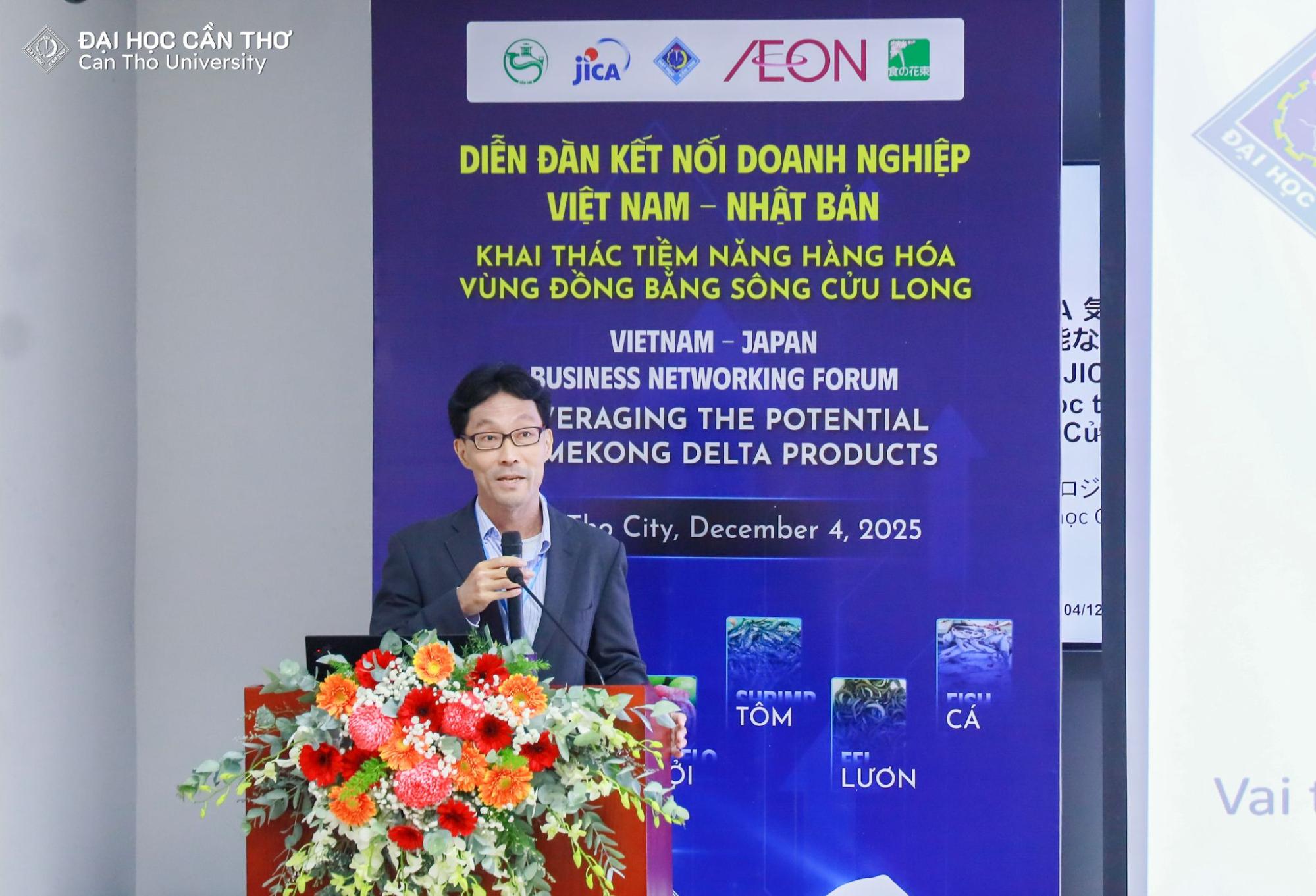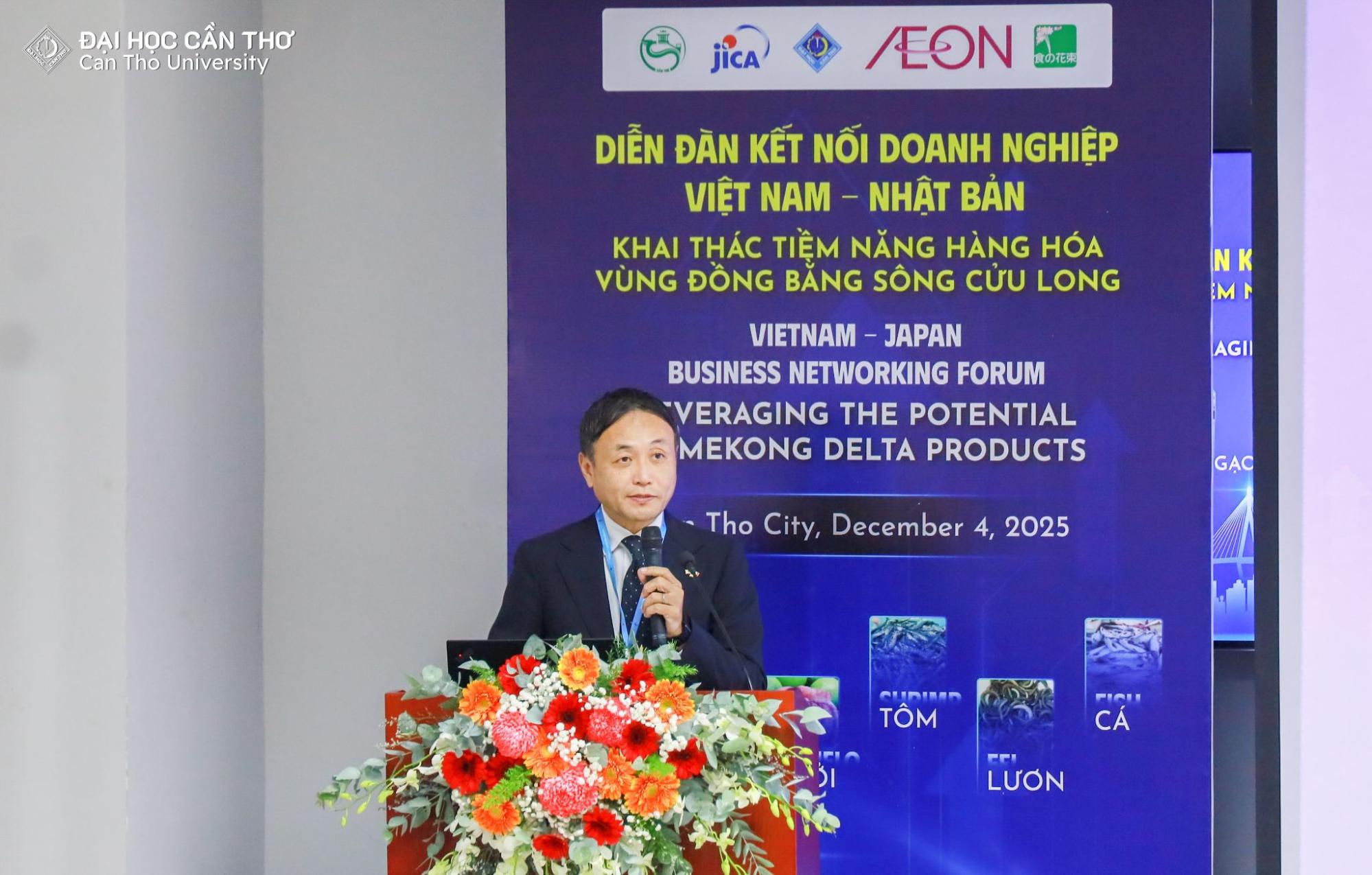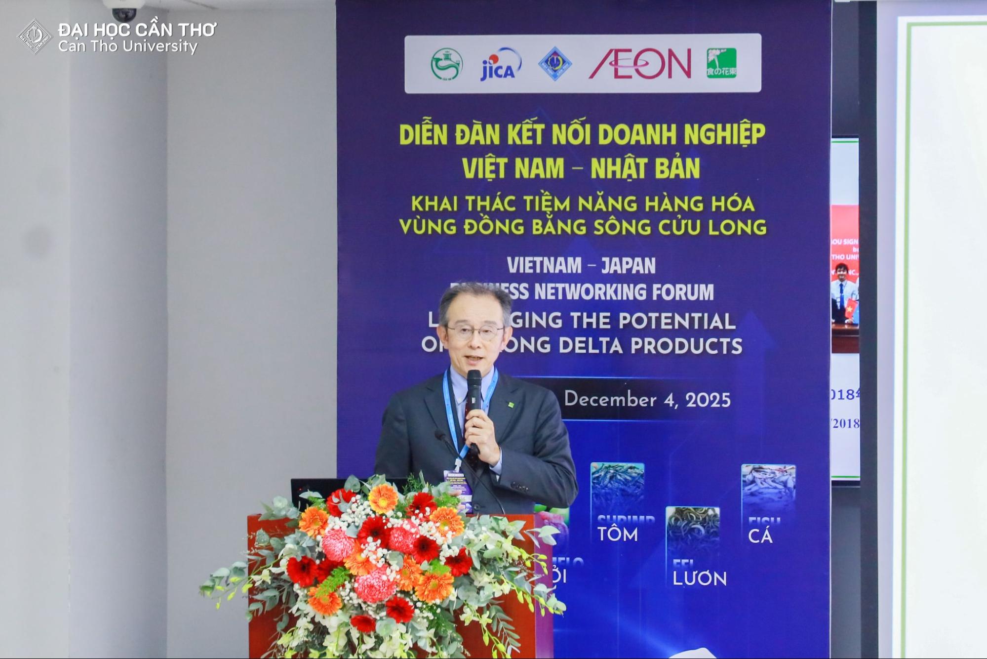 Ngày 04/12/2025, nhằm tăng cường kết nối và thúc đẩy hợp tác hiệu quả giữa cơ quan quản lý, các viện – trường và cộng đồng doanh nghiệp Việt Nam – Nhật Bản, Đại học Cần Thơ (ĐHCT) phối hợp cùng UBND thành phố Cần Thơ, JICA Việt Nam, Công ty TNHH AEON Việt Nam và Công ty TNHH Thực phẩm Takesho Việt Nam tổ chức Diễn đàn Kết nối Doanh nghiệp Việt Nam – Nhật Bản với chủ đề “Khai thác tiềm năng hàng hóa vùng Đồng bằng sông Cửu Long”.