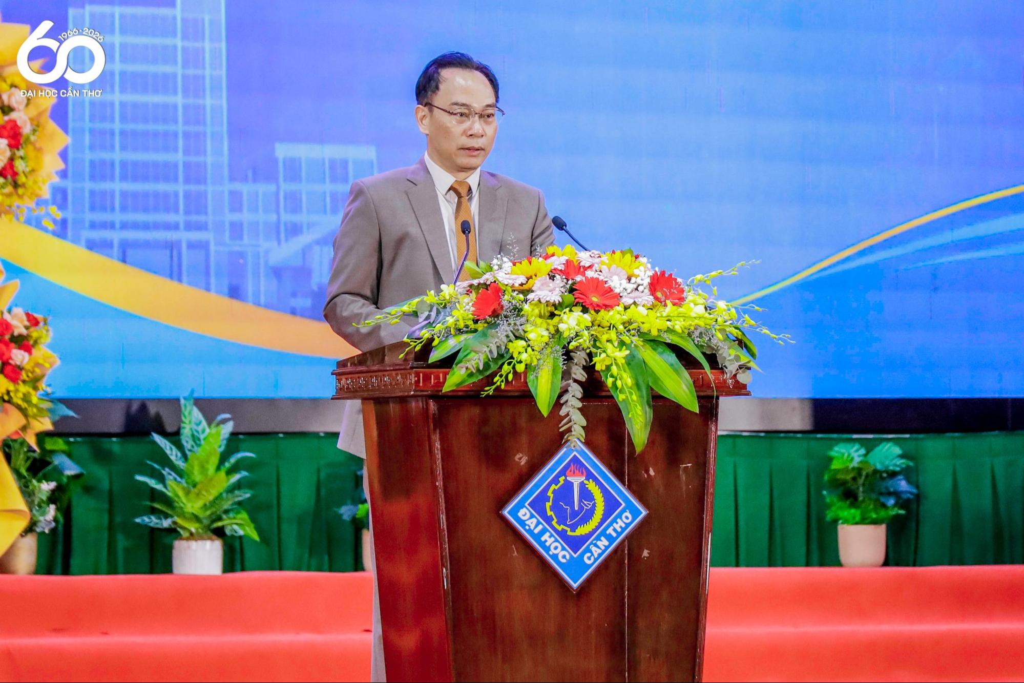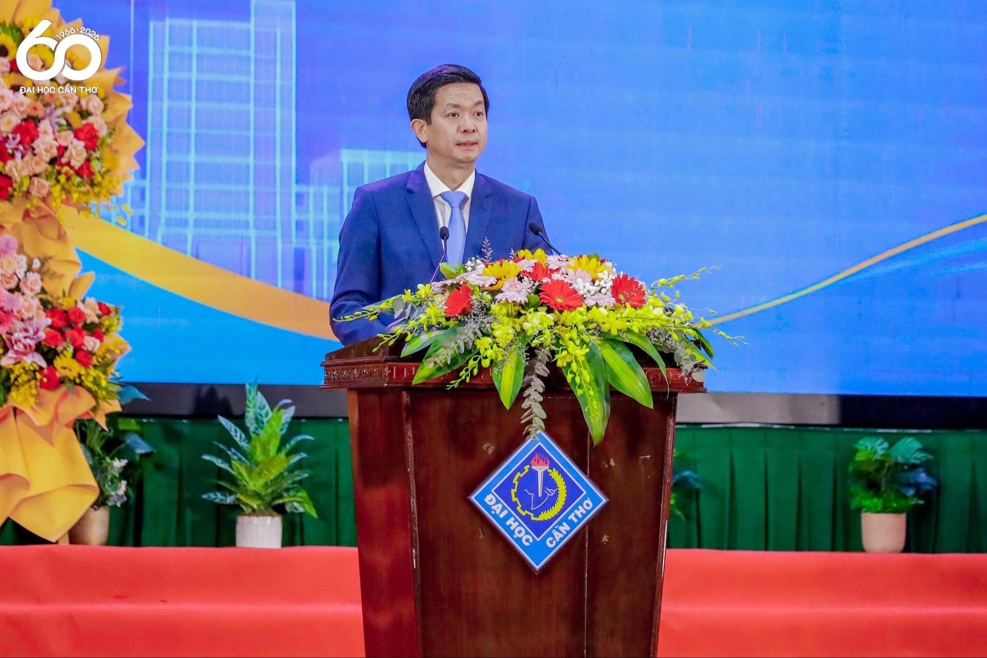 Phát biểu tại buổi lễ, GS.TS. Nguyễn Thanh Phương đã trang trọng ôn lại hành trình sáu thập kỷ đầy tự hào, khẳng định những giá trị cốt lõi đã làm nên bản sắc của Nhà trường. Bí thư Đảng ủy ĐHCT nhấn mạnh, từ khi thành lập, Viện ĐHCT đã định hướng là một cơ sở đào tạo đa ngành, đa lĩnh vực và vẫn giữ mô hình này đến nay. Nếu khi thành lập, Trường chỉ có 4 ngành đào tạo (chủ yếu là lĩnh vực khoa học xã hội) thì đến nay, ĐHCT đã có 214 chương trình đào tạo ở các trình độ đại học, thạc sĩ và tiến sĩ, với tổng số gần 50.000 người học. Sáu mươi năm qua, Nhà trường đã đào tạo cho vùng ĐBSCL và cả nước trên 265.000 cử nhân, thạc sĩ, tiến sĩ thuộc nhiều lĩnh vực. ĐHCT luôn tự hào với nhiều cựu sinh viên, học viên đã và đang giữ nhiều trọng trách ở các địa phương và lãnh đạo cấp cao của Đảng và Nhà nước; lãnh đạo nhiều hoạt động kinh tế của vùng và quốc gia.
