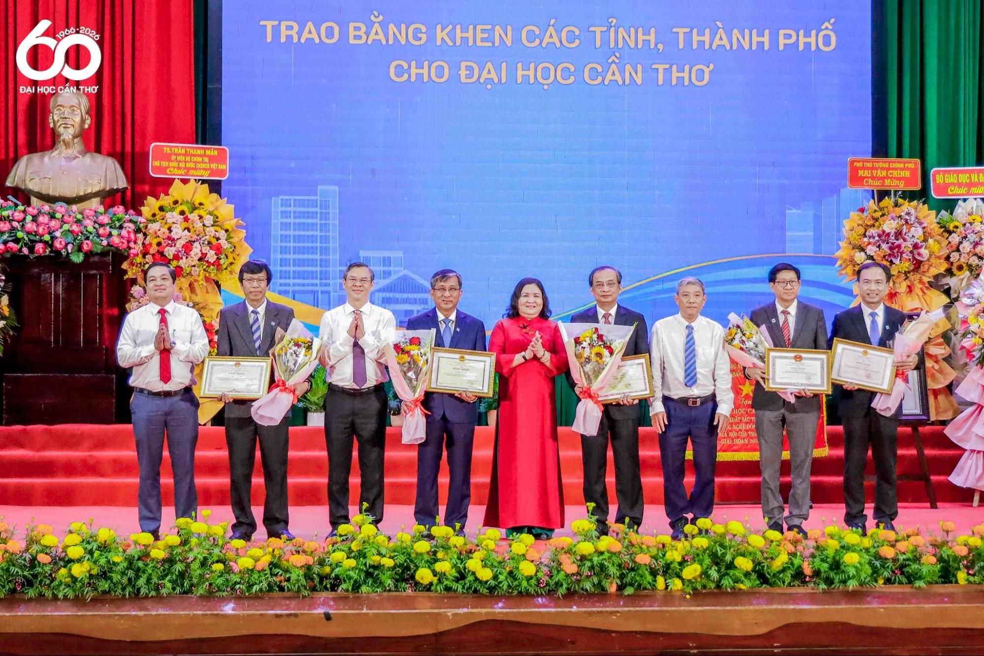 Nhân dịp trọng đại này, ĐHCT vinh dự được Ủy ban Nhân dân thành phố Cần Thơ cùng các tỉnh An Giang, Cà Mau, Đồng Tháp, Vĩnh Long trao tặng Bức trướng và Bằng khen nhằm ghi nhận những đóng góp nổi bật của Nhà trường đối với sự phát triển chung của khu vực. Đặc biệt, trong khuôn khổ chương trình, đại diện Bộ Giáo dục và Đào tạo đã công bố Quyết định của Chủ tịch nước về việc trao huân chương lao động hạng Nhì cho GS.TS. Nguyễn Thanh Phương và Huân chương lao động hạng Ba cho PGS.TS. Mai Văn Nam vì thành tích xuất sắc trong công tác, góp phần vào sự nghiệp xây dựng chủ nghĩa xã hội, bảo vệ Tổ quốc