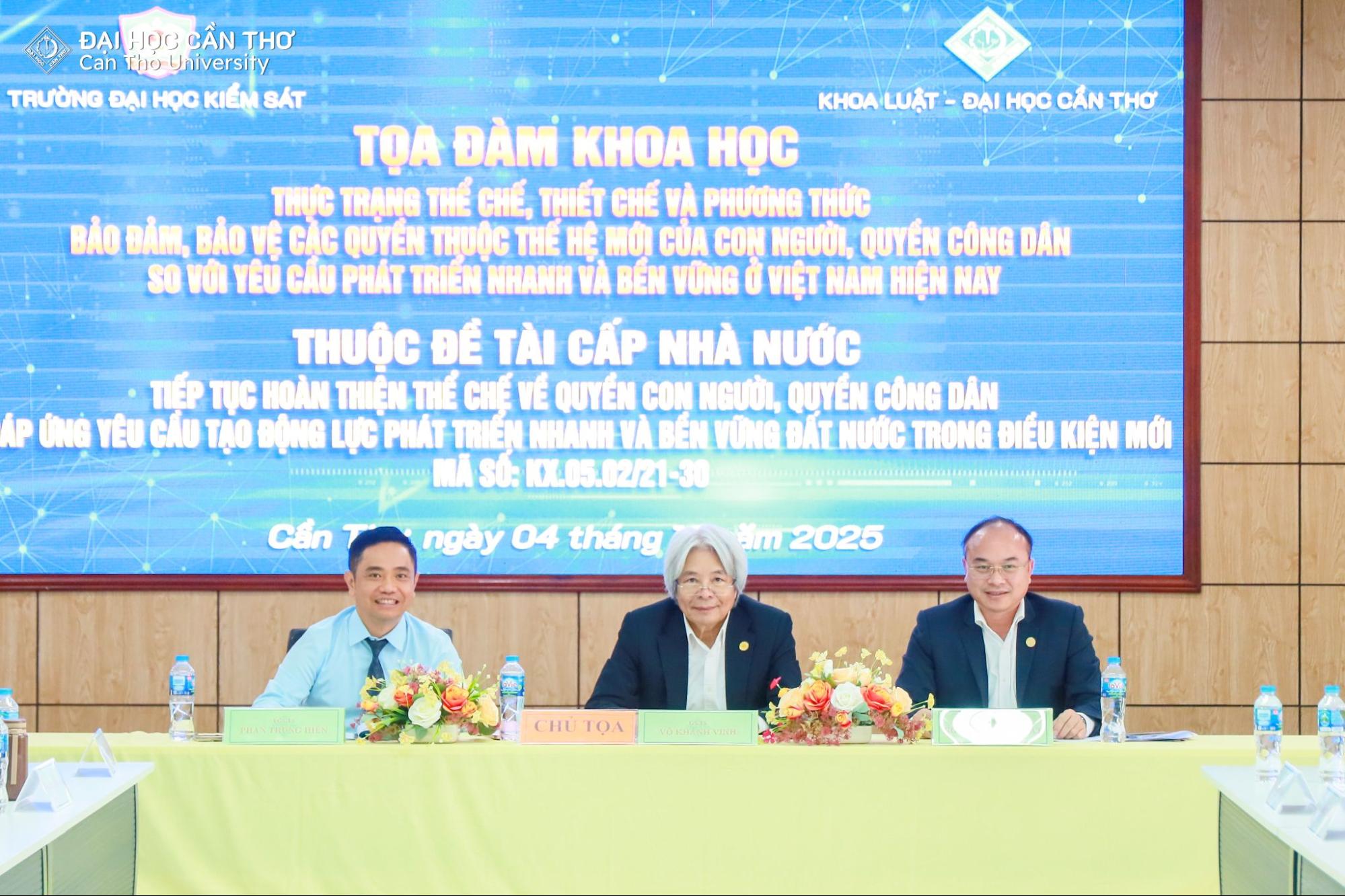 Ngày 04/12/2025, Khoa Luật, Đại học Cần Thơ (ĐHCT) phối hợp với Trường Đại học Kiểm sát tổ chức Tọa đàm khoa học cấp quốc gia với chủ đề “Thực trạng thể chế, thiết chế và phương thức bảo đảm, bảo vệ các quyền thuộc thế hệ mới của con người, quyền công dân so với yêu cầu phát triển nhanh và bền vững ở Việt Nam hiện nay”.