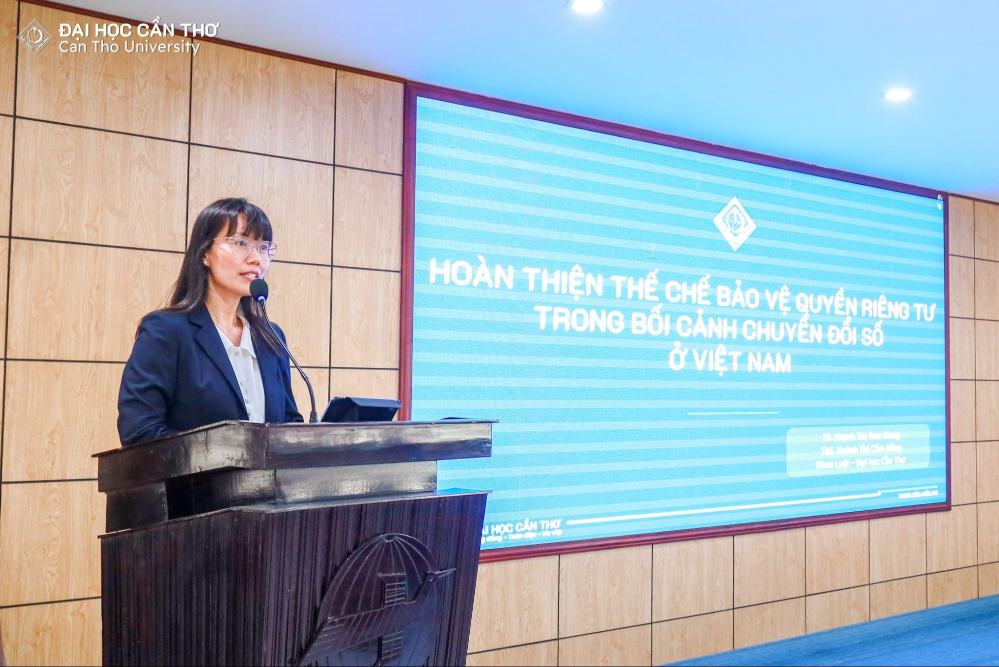 TS. Huỳnh Thị Trúc Giang trình bày tham luận “Hoàn thiện thể chế bảo vệ quyền riêng tư trong bối cảnh chuyển đổi số ở Việt Nam hiện nay”