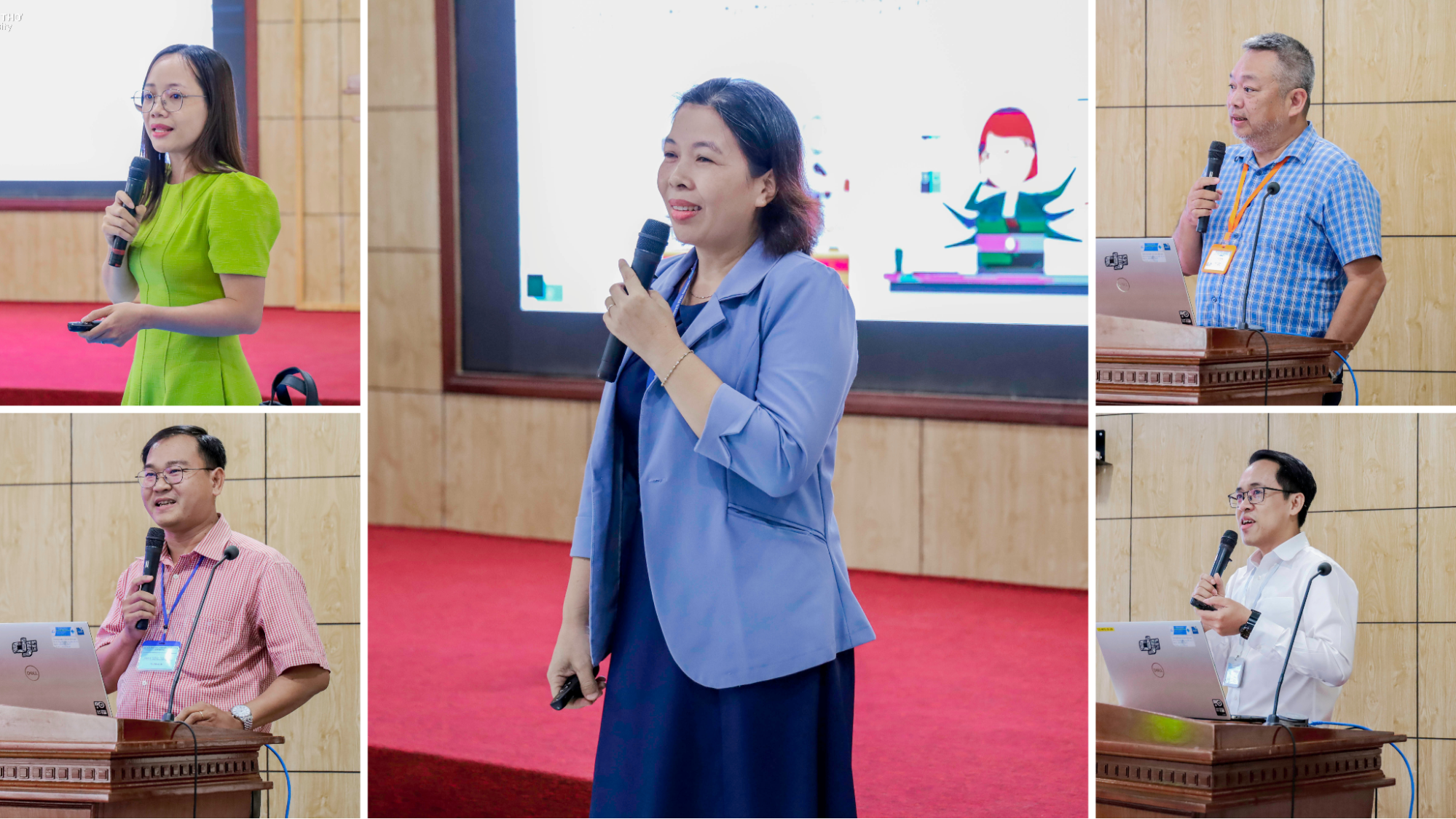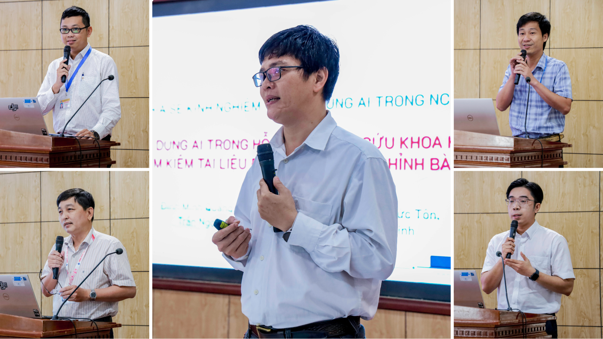 Các báo cáo viên trình bày tham luận tại Hội thảo chia sẻ kinh nghiệm về ứng dụng AI trong nghiên cứu khoa học