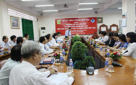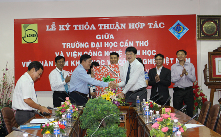 Ngày 26/11/2014, Lễ ký kết hợp tác giữa Trường Đại học Cần Thơ (ĐHCT) và Viện Công nghệ Sinh học - Viện Hàn Lâm Khoa học và Công nghệ Việt Nam (CNSH-HL KHCN Việt Nam) đã long trọng diễn ra tại Hội trường Ban Giám hiệu-ĐHCT. Tham dự Lễ ký kết có đại diện Vụ Khoa học Công nghệ và Môi trường , Bộ Giáo dục và Đào tạo gồm TS. Nguyễn Thị Tơ, Chuyên viên chính và ThS. Lý Thị Nhàn, Chuyên viên; các thành viên Ban lãnh đạo và Ban Giám hiệu, đại diện lãnh đạo và chuyên trách các đơn vị trực thuộc của hai bên.