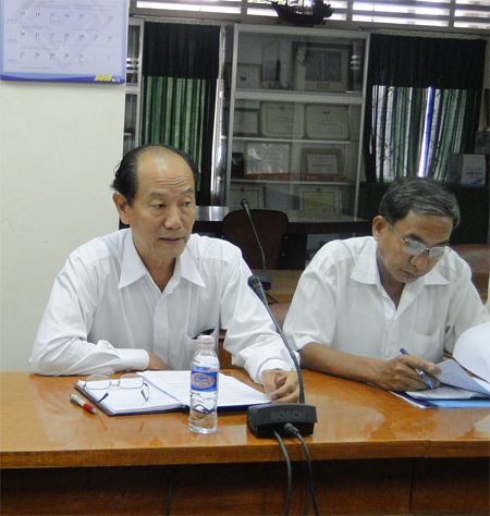 TS. Dương Thái Công (trái), Hiệu trưởng Trường ĐH KT - CN Cần Thơ trình bày đề xuất hỗ trợ với lãnh đạo Trường ĐHCT |