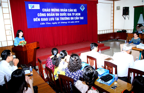 Trong khuôn khổ hoạt động giao lưu, trao đổi kinh nghiệm giữa hai đơn vị, ngày 21/10/2016, Công đoàn Đại học Quốc gia Thành phố Hồ Chí Minh (ĐHQG TP.HCM) và Công đoàn Trường Đại Học Cần Thơ (ĐHCT) đã có cuộc hội ngộ, giao lưu thật thú vị tại Trường ĐHCT - Trung tâm của Miền Tây sông nước. Đại diện lãnh đạo chính quyền, lãnh đạo công đoàn, ban nữ công và các đồng chí chủ tịch, tổ trưởng công đoàn cơ sở trực thuộc của hai đơn vị đã tham dự buổi giao lưu.