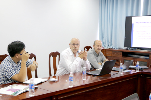 Sau buổi gặp gỡ lãnh đạo Nhà trường để giới thiệu về Dự án và trao đổi ban đầu về giai đoạn khởi động Blue Dragon, với khối lượng công việc khá lớn trong giai đoạn này, các chuyên gia của Hiệp hội Nước Hà Lan sẽ tiếp tục làm việc với các chuyên gia của Trường ĐHCT để khẩn trương thảo luận về các công tác chuyên môn sẽ được phối hợp thực hiện trong thời gian tới.