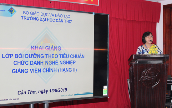 Chương trình khai giảng Lớp bồi dưỡng diễn ra vào sáng ngày 13/8/2019, tại Trường ĐHCT với sự tham dự của GS.TS. Hà Thanh Toàn, Hiệu trưởng, Ths. Nguyễn Thị Kim Loan Phó Trường phòng Tổ chức Cán bộ, Ths. Hồ Thị Thu Hồ, Phó Giám đốc Trung tâm Bồi dưỡng Nghiệp vụ Sư phạm cùng đại diện lãnh đạo các đơn vị và các học viên.
