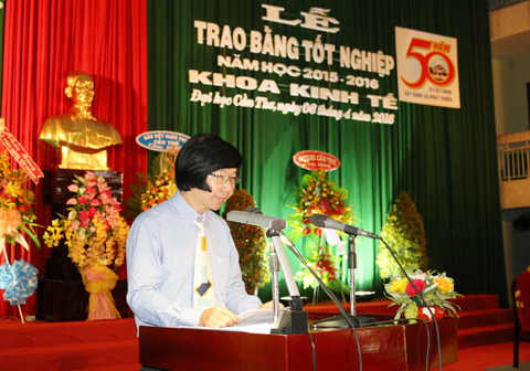 Là một trong những khoa có bề dày lịch sử của Trường ĐHCT, Khoa Kinh tế được thành lập ngày 30/7/1979. Hơn 35 năm qua, Khoa đã không ngừng phát triển về quy mô và chất lượng. Khoa hiện có 09 bộ môn và 01 Trung tâm Tư vấn Kinh tế với 130 cán bộ giảng dạy trong tổng số 140 viên chức. Trong lĩnh vực đào tạo, Khoa có hơn 10.000 sinh viên của 11 ngành học bậc đại học, 300 học viên của 04 ngành học bậc cao học và 100 nghiên cứu sinh của 3 ngành học bậc tiến sĩ đáp ứng nhu cầu phát triển kinh tế-xã hội của vùng Đồng bằng sông Cửu Long. Tại buổi Lễ Tốt nghiệp lần này, Khoa có tổng số 878 sinh viên được trao bằng, trong đó, có 4% sinh viên đạt loại Xuất sắc; 27% sinh viên đạt loại Giỏi, loại Khá 62%, và Trung bình chiếm 7%. Đó là kết quả rất đáng khích lệ của thầy và trò trong thời gian qua.