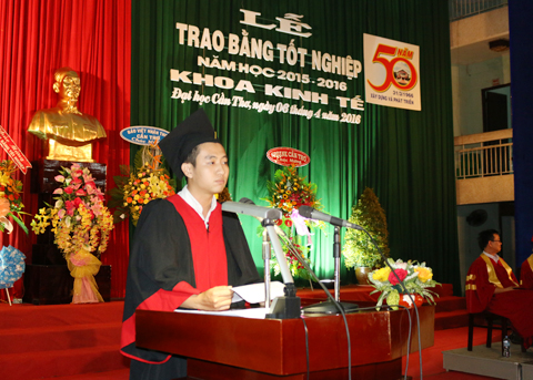 Hòa trong niềm hân hoan của ngày lễ tốt nghiệp, đại diện phụ huynh sinh viên và đại diện các Tân Cử nhân cũng đã gửi lời cảm ơn đến Ban Giám hiệu Trường ĐHCT, Ban Lãnh đạo, tập thể thầy, cô giáo Khoa Kinh tế đã tạo điều kiện thuận lợi cho các em học tập, rèn luyện, nghiên cứu; tận tâm đồng hành; tận tình truyền đạt kiến thức, kỹ năng, kinh nghiệm sống,...để các em vững tin trên con đường lập thân, lập nghiệp phía trước.