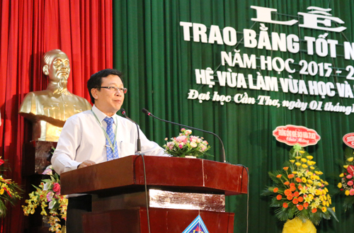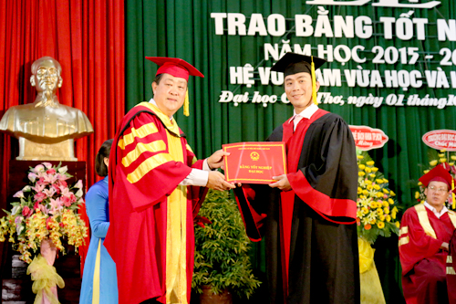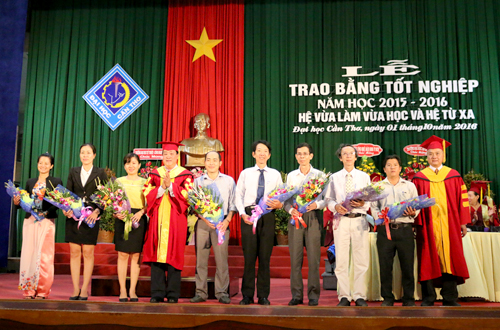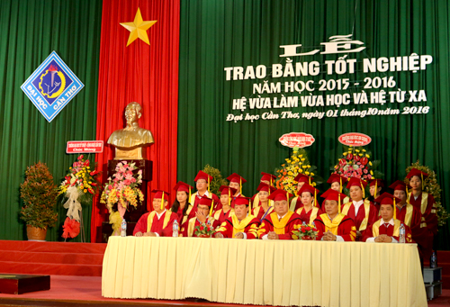 Sáng ngày 01/10/2016, Trường Đại học Cần Thơ (ĐHCT) tổ chức Lễ Trao bằng tốt nghiệp hệ vừa làm vừa học và hệ từ xa năm học 2015-2016 tại Hội trường Lớn. Tham dự buổi lễ có đại diện lãnh đạo các đơn vị liên kết, các tân cử nhân, kỹ sư và gia đình đến mừng lễ tốt nghiệp. Về phía Trường ĐHCT có Ban Giám hiệu, đại diện lãnh đạo và cán bộ chuyên trách các đơn vị trong Trường.