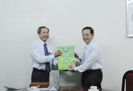 Trao tặng quà lưu niệm nhân buổi làm việc giữa hai trường |